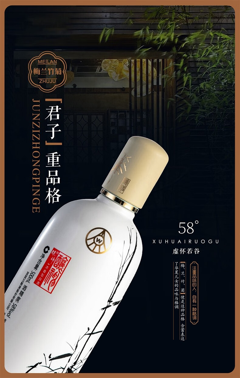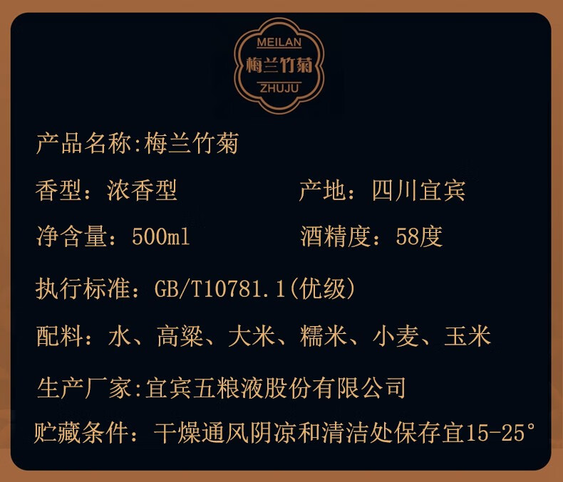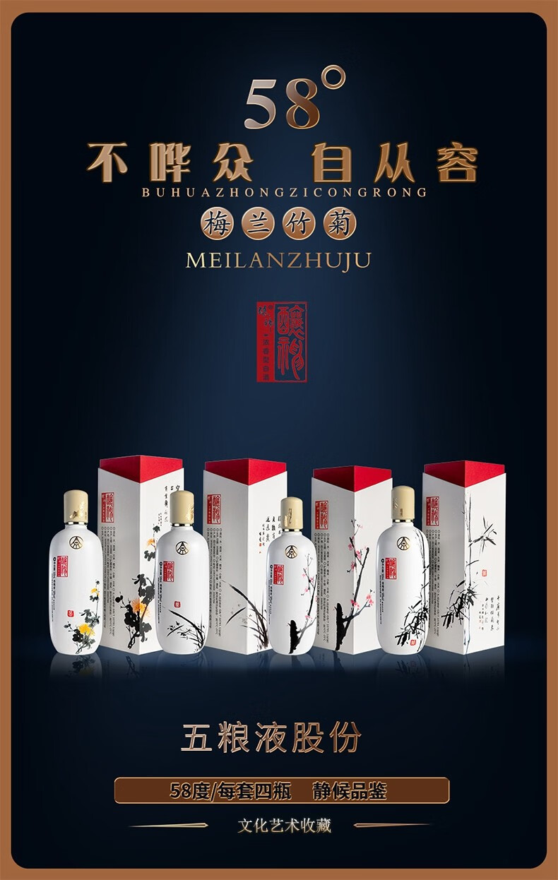 五粮液股份 送礼佳品 酿神梅兰竹菊 高度纯粮食浓香型白酒 58度500ml*4瓶