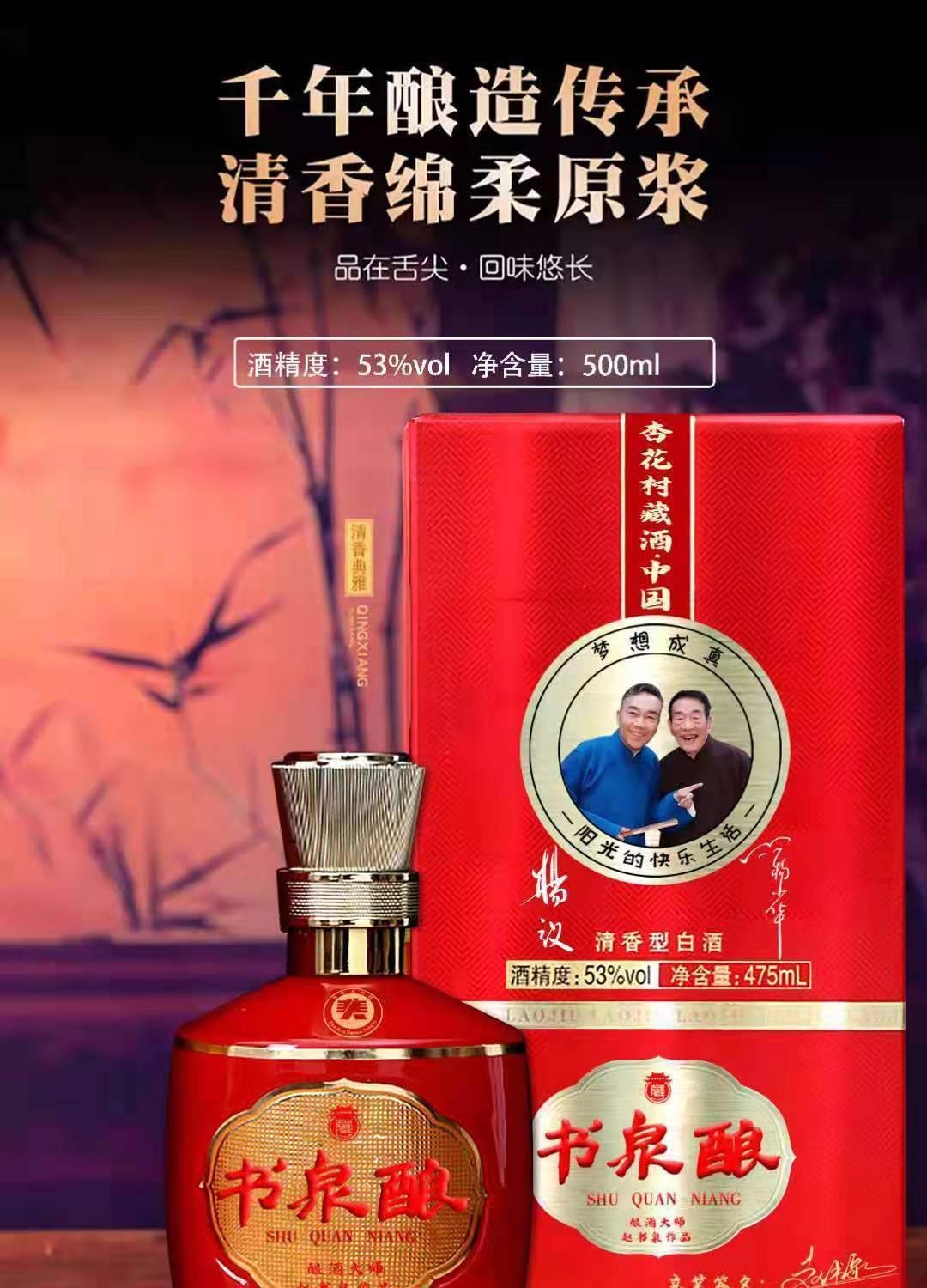 书泉酿 巴拿马红 纯粮酿造 53度 清香型白酒 475ml*6瓶 整箱