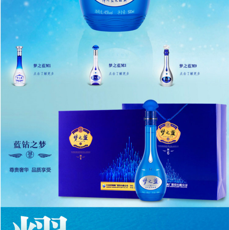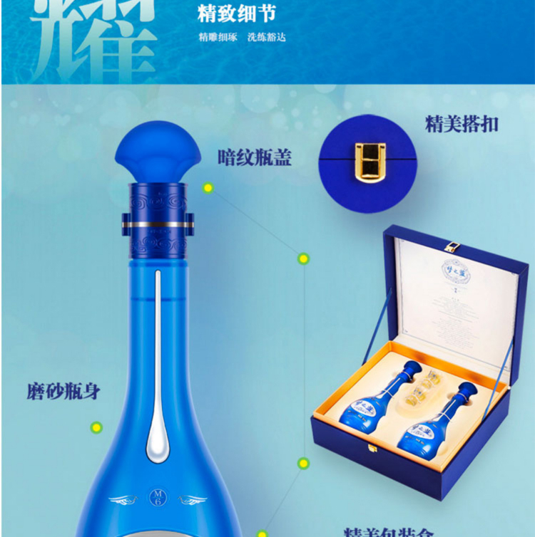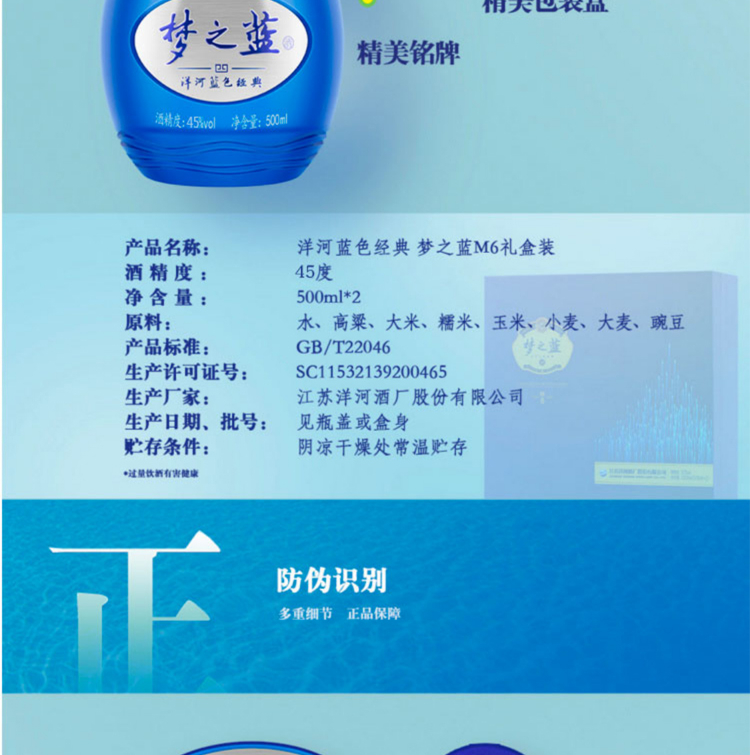 洋河 梦之蓝M6 口感绵柔浓香型白酒 45度 500ml*2瓶 礼盒装