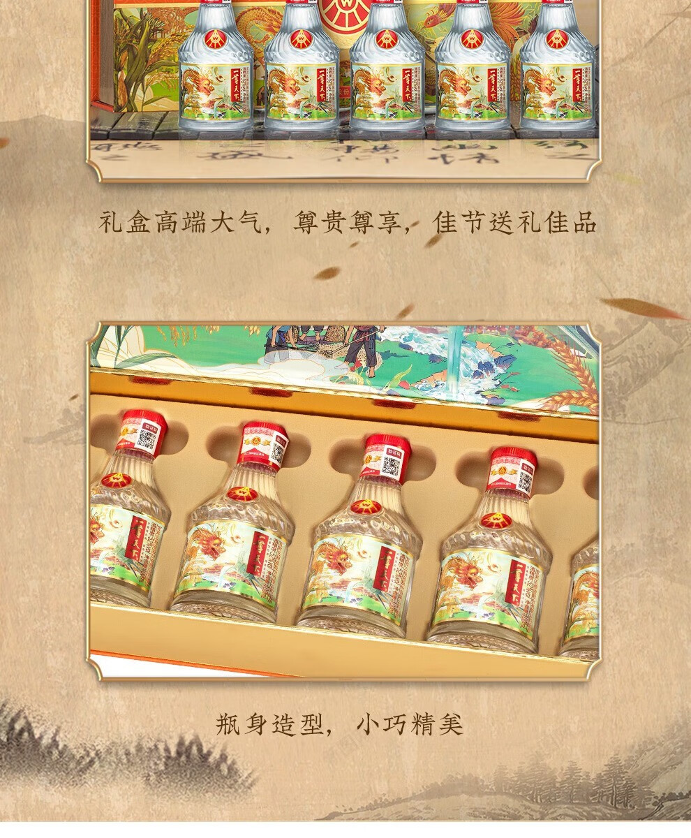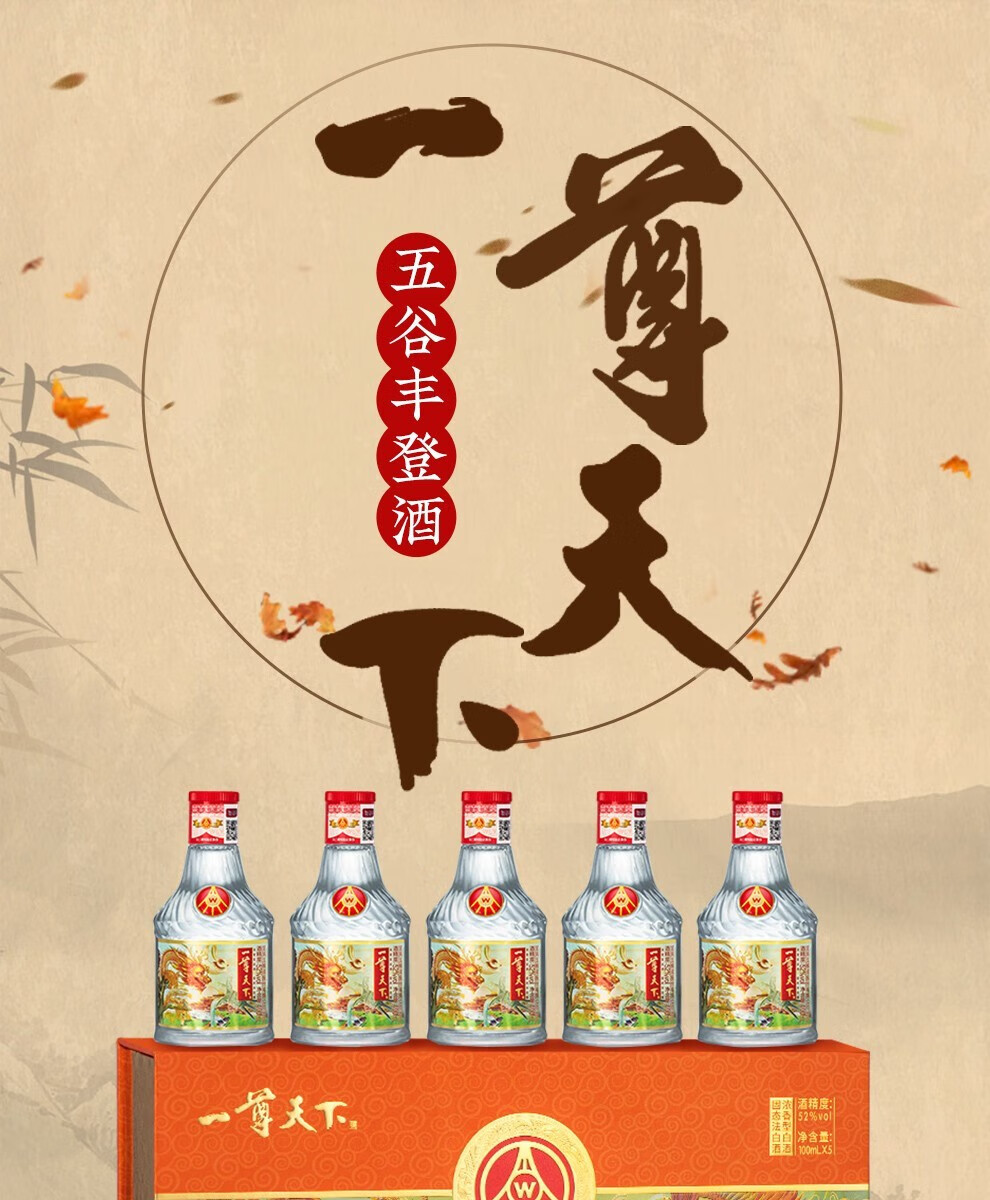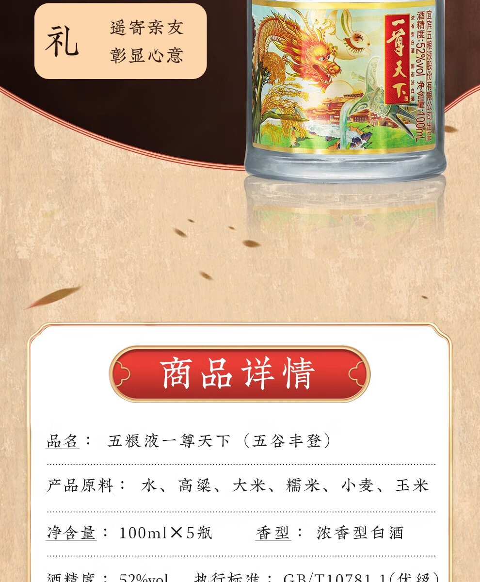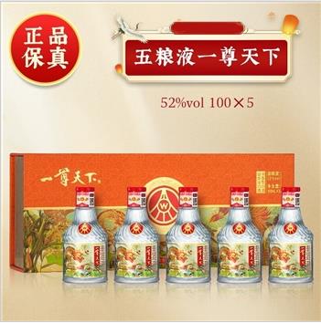 五粮液股份出品 五粮液系列小酒版 一尊天下 五谷丰登 52度 浓香型白酒礼盒 粮食酒100mL*5瓶*4盒 整箱