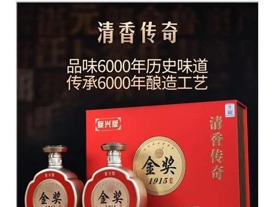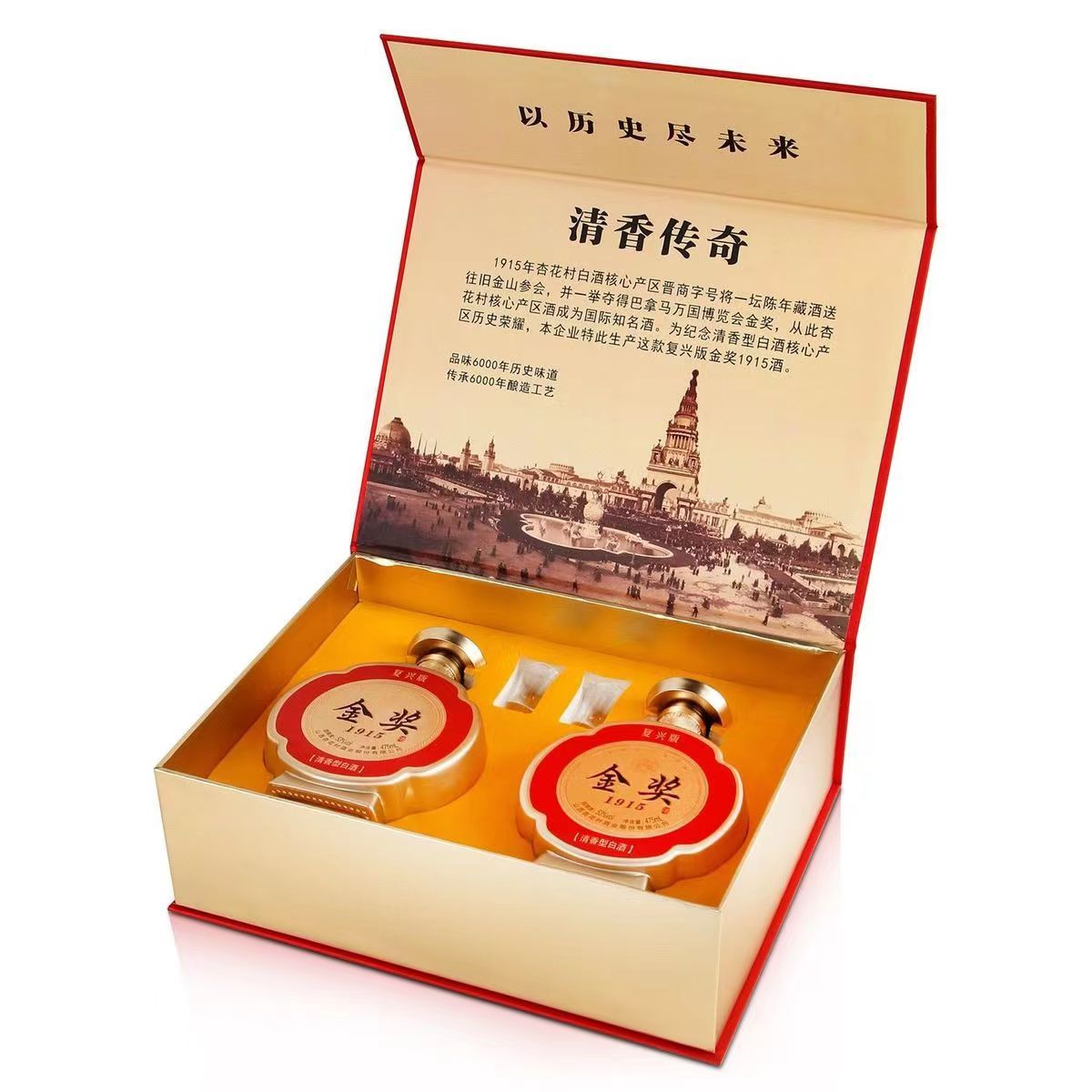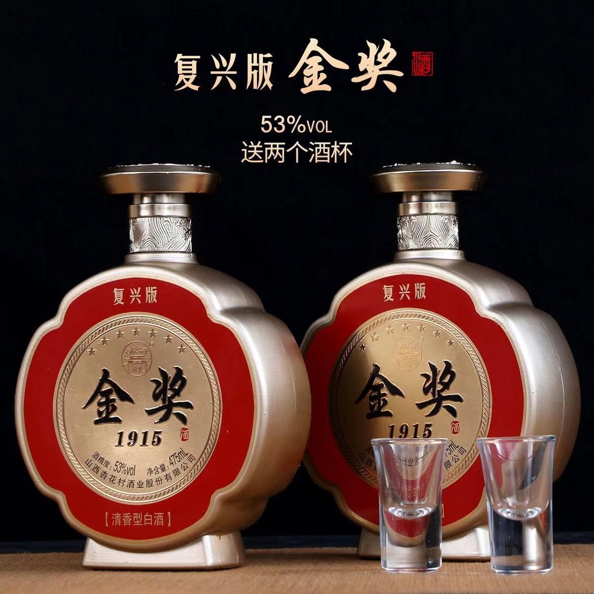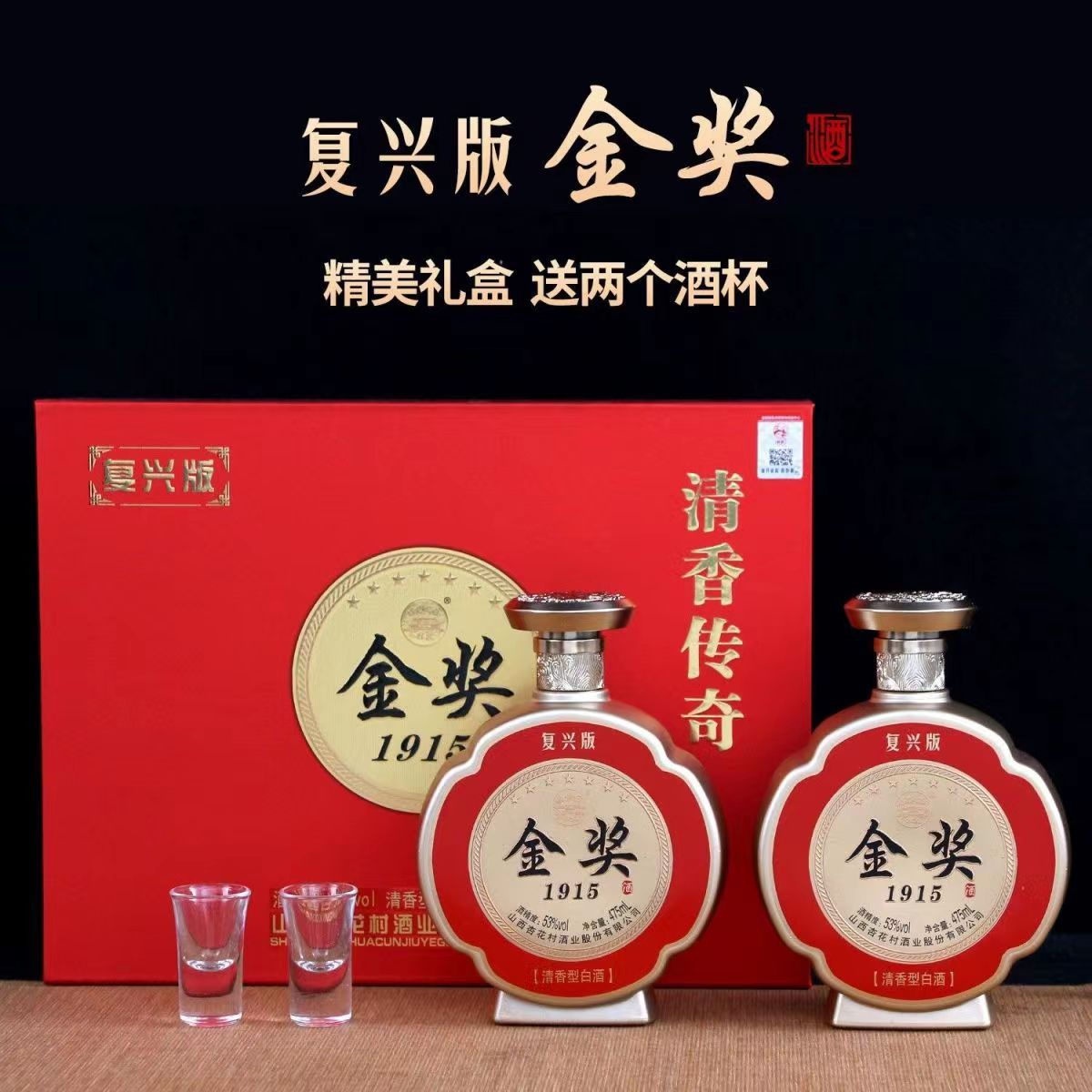 山西杏花村酒业 清香传奇 金奖1915 复兴版 清香型白酒 53度 475ml*2瓶 礼盒装