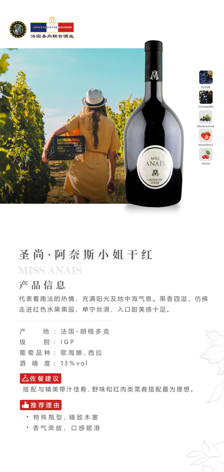 圣尚·阿奈斯小姐 法国进口 干红葡萄酒 13%VOL 750ml*6支 整箱
