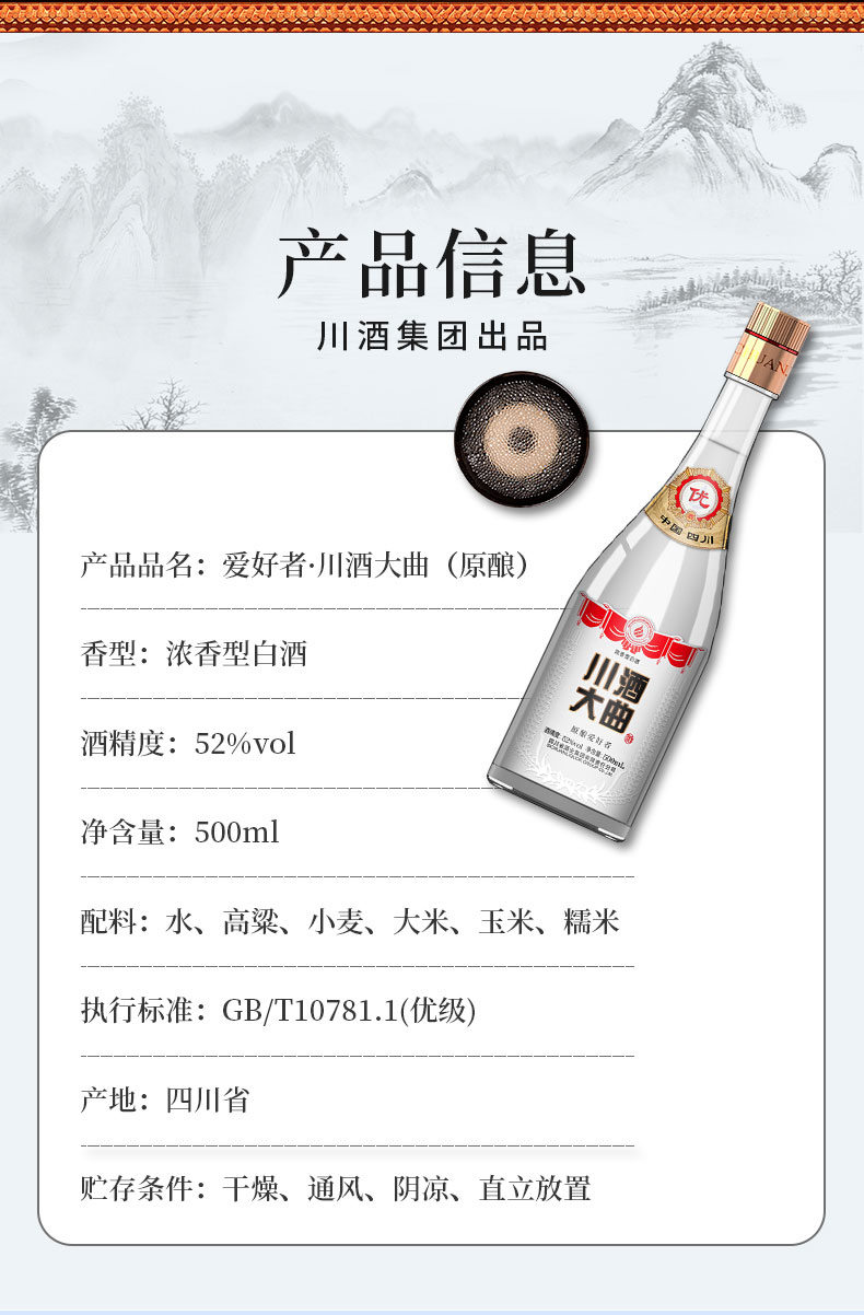 川酒集团 原酿老酒 浓香型白酒 52度 500ml*6瓶 整箱