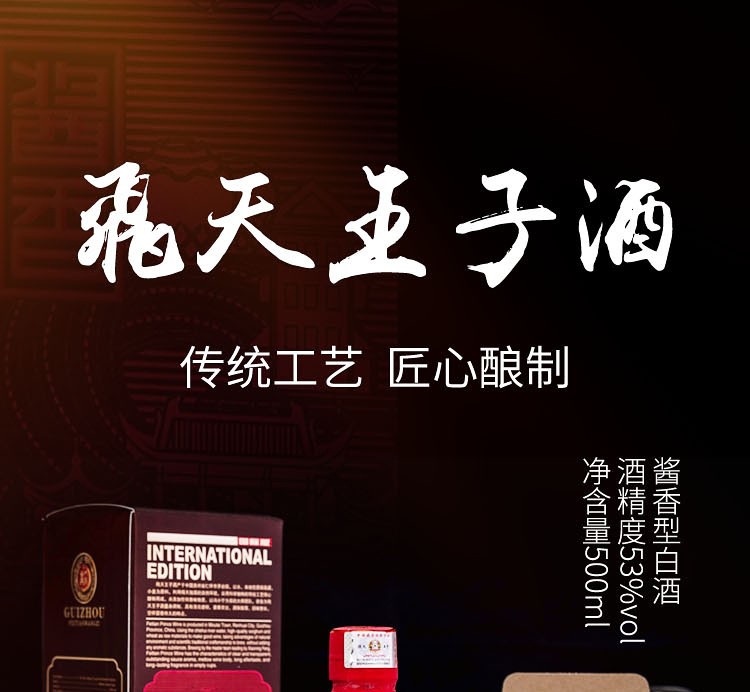 飞天王子贵州飞天王子酒国际版 新老款随机发货 53度 酱香型白酒 茅台镇纯粮酿造送礼宴请 500ml*6瓶 整箱装