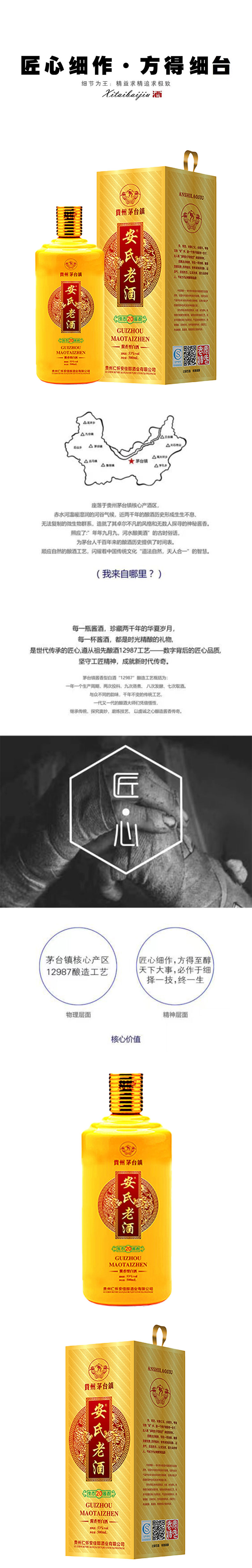 贵州仁怀 安氏老酒 生态(20)酱香型白酒 53度 500ml 单瓶