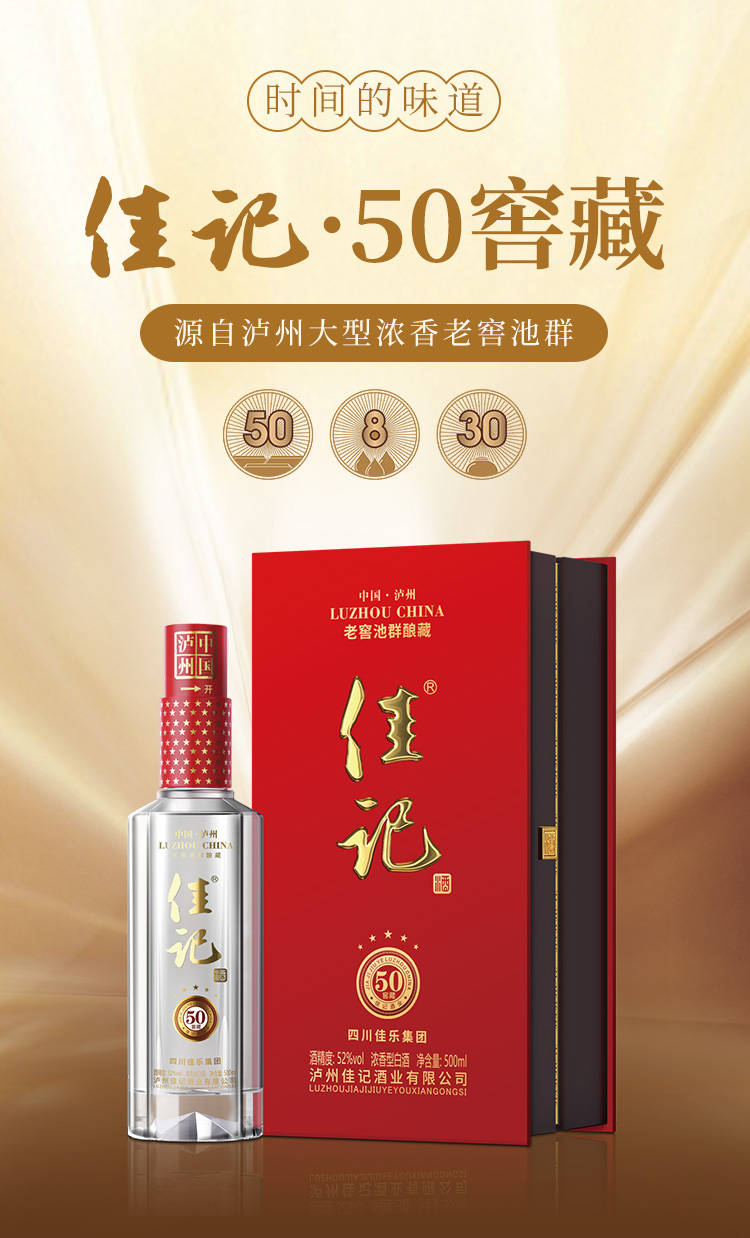 佳记50窖藏 52度 浓香型白酒 500ml*6瓶 整箱
