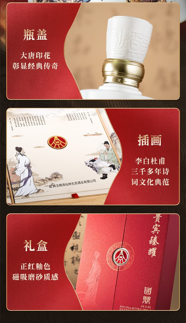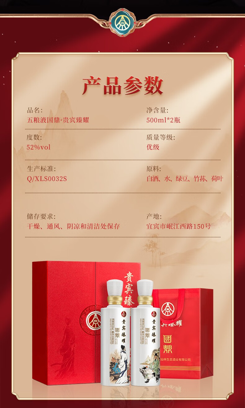 五粮液仙林生态酿酒有限公司出品 贵宾臻耀 国鼎 52度白酒 收藏文创酒 500ml*2瓶*3盒 整箱