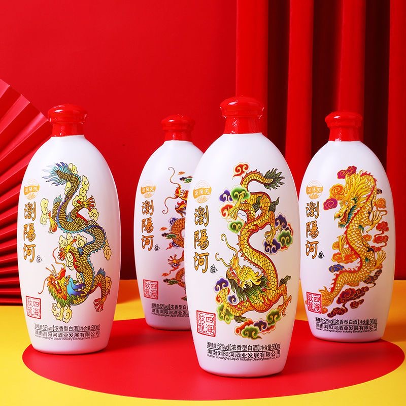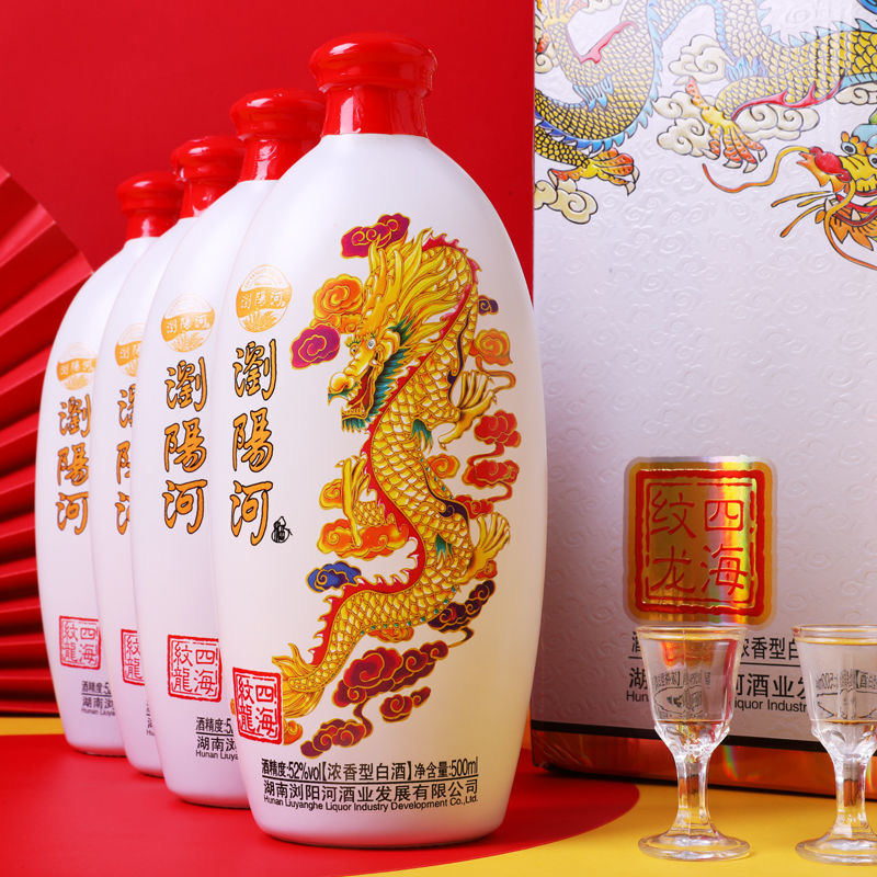 浏阳河 纹龙四海 浓香型白酒 52度 500ml*4瓶 礼盒装