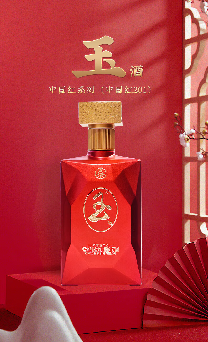 五粮液股份公司 玉酒 浓香型白酒 中国红(201) 50度 520ml*6瓶 整箱装