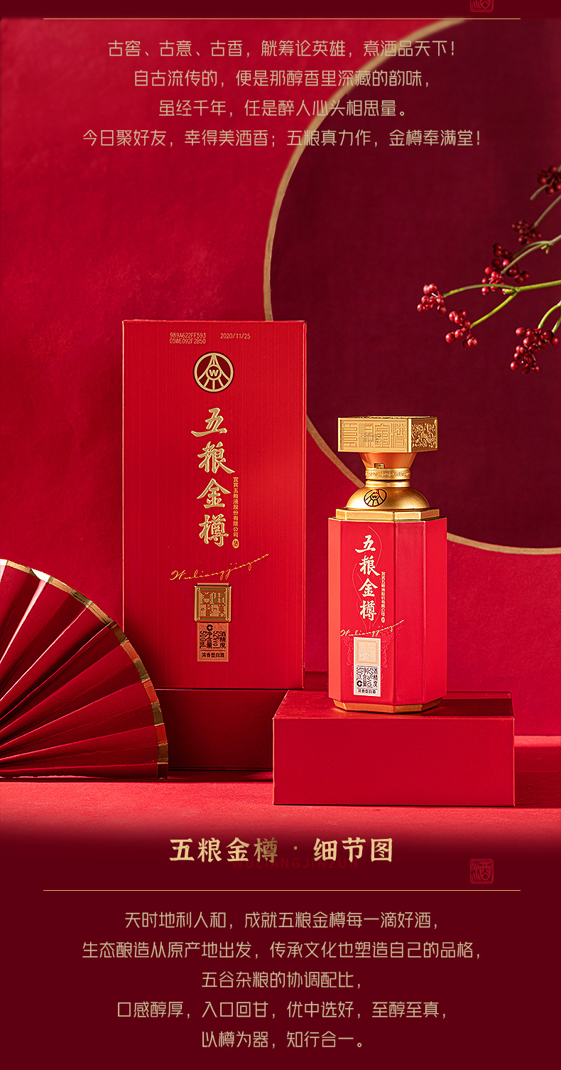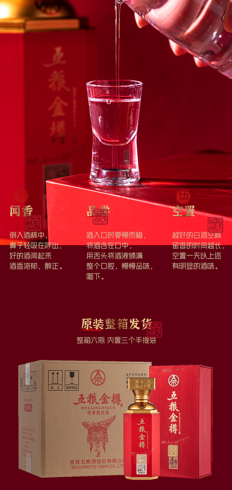 五粮液(WULIANGYE) 五粮金樽 红樽 52度浓香型白酒 礼盒装纯粮食酒 500ml*6瓶 整箱