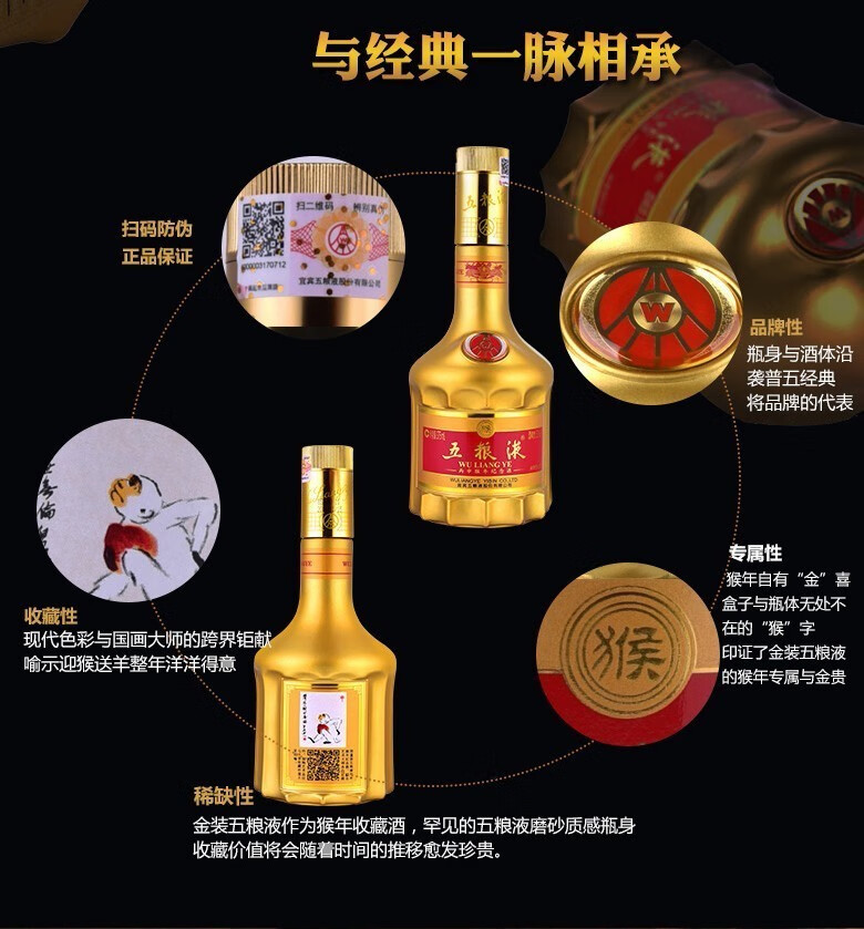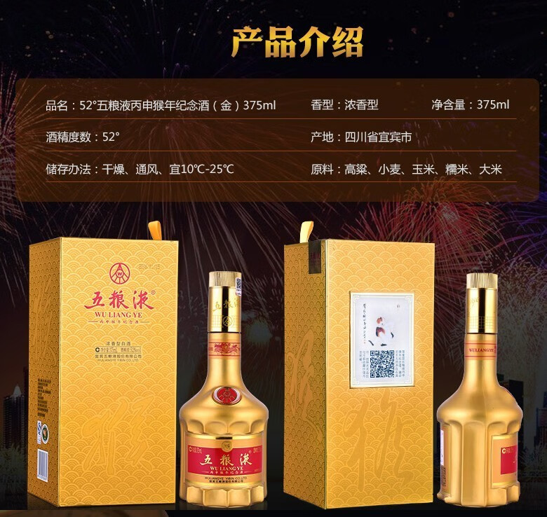 五粮液生肖纪念酒 丙申猴年 375ml*6瓶整箱装 52度 浓香型白酒