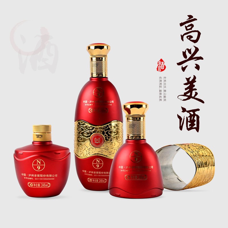 泸州老窖高兴美酒N9 42度 浓香型白酒 248mL*2瓶*6 整箱装