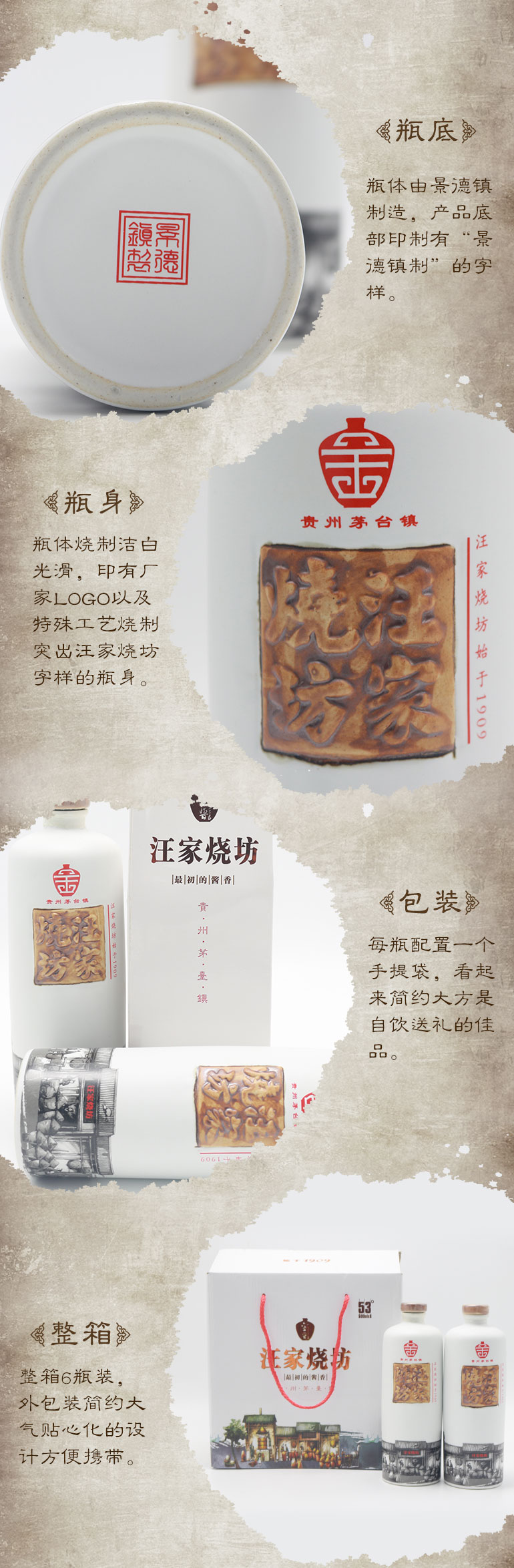 金酱酒 贵州茅台镇 汪家烧坊白酒 金酱老酒 酱香型白酒 53度 500ml*6瓶 整箱装