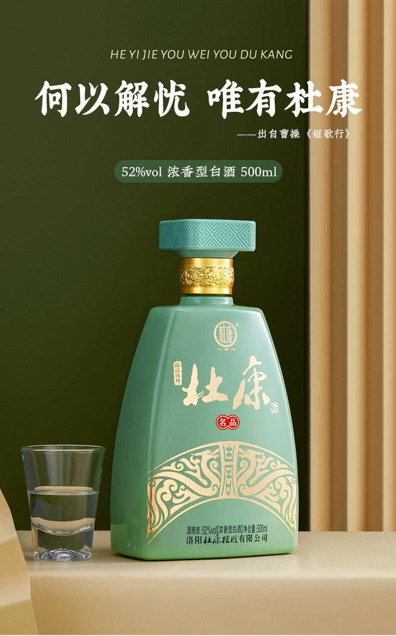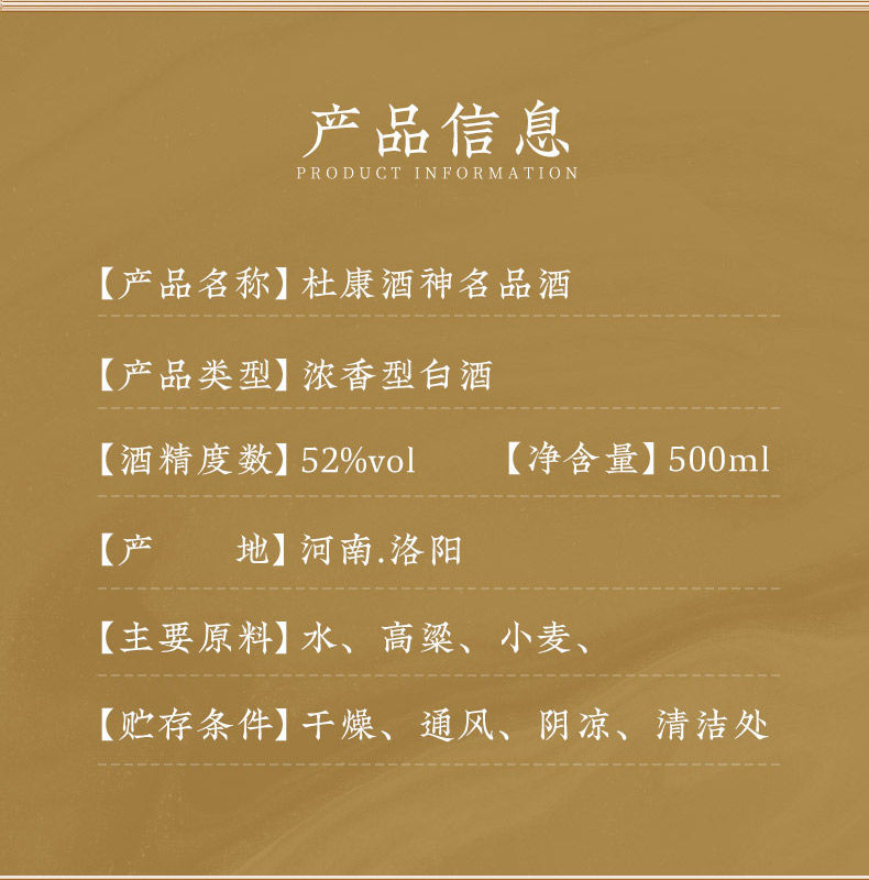 洛阳杜康 名品酒 52度浓香型 500ml*4瓶 高档纯粮食白酒水 整箱送礼收藏