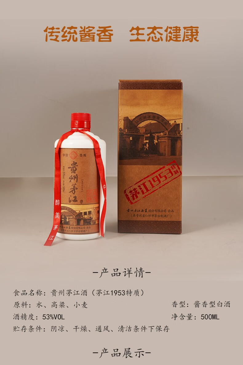 传统酱香 贵州茅江酒 53度500毫升酱香型白酒 1953特质 整箱6瓶装