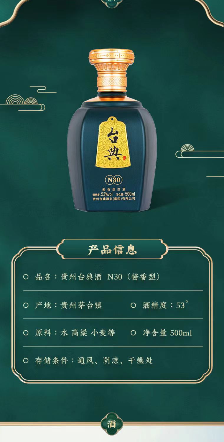 贵州省茅台镇 台典 N30 53度酱香型白酒 500ml*6瓶 整箱装
