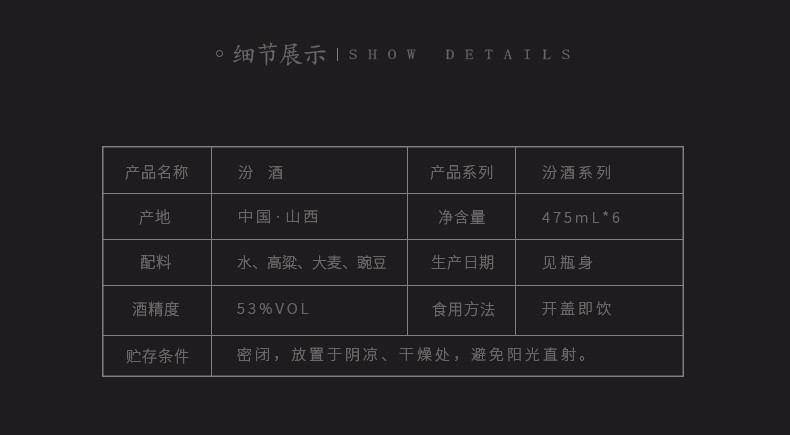 山西汾酒 杏花村酒 巴拿马20 53度 475ml *6瓶 清香型整箱装白酒