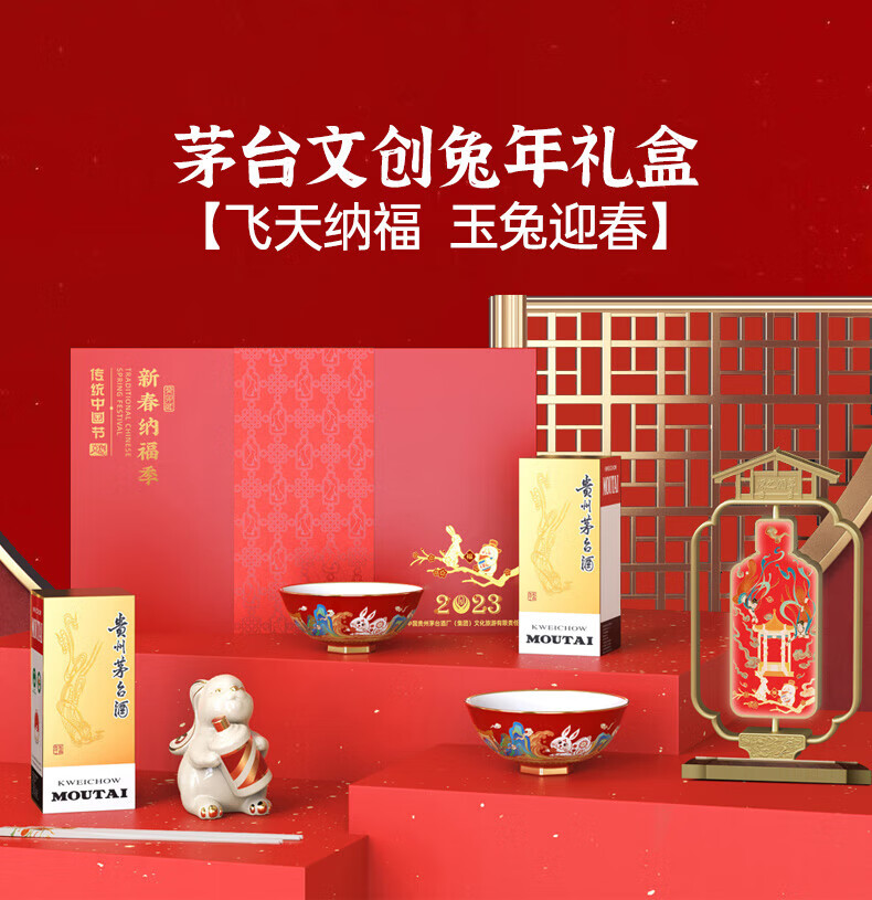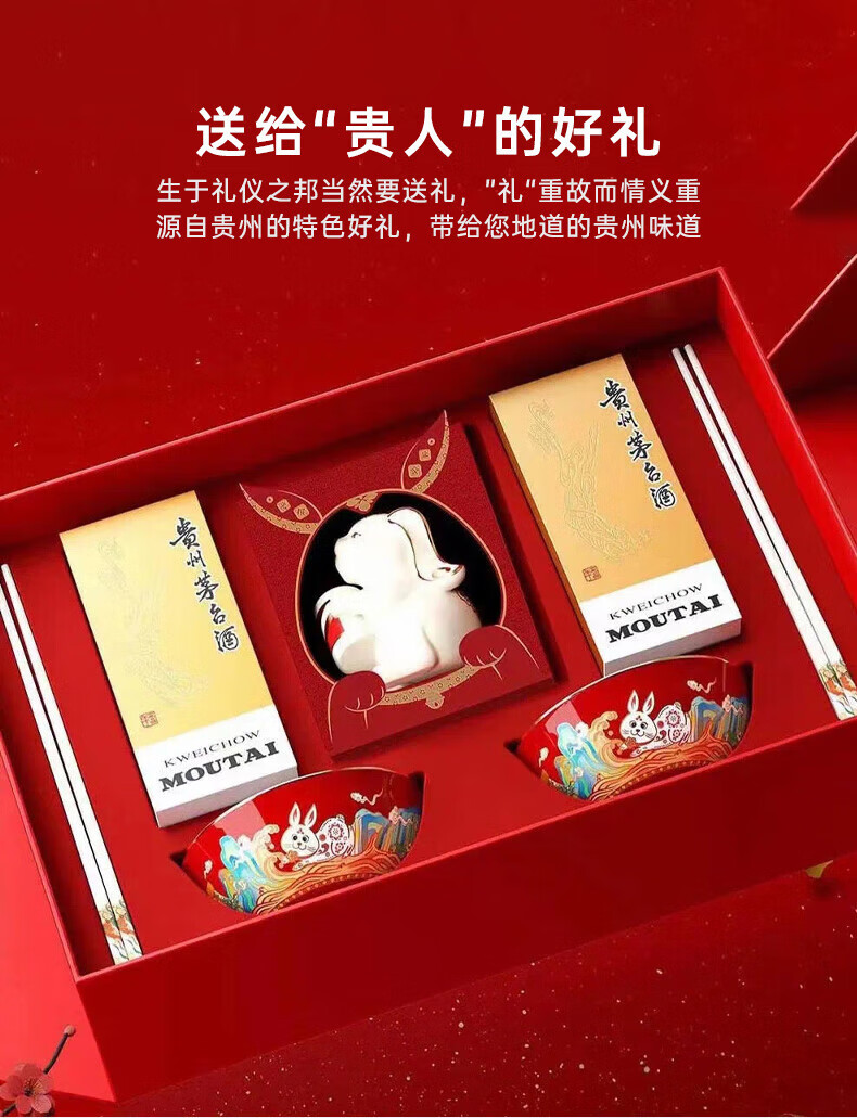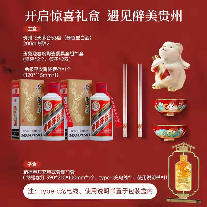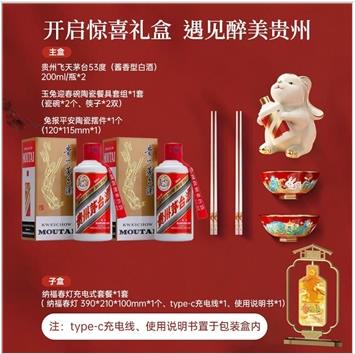 贵州茅台礼盒 53度飞天茅台200ml 酱香型白酒 兔年文创礼盒 1提 200ml*2