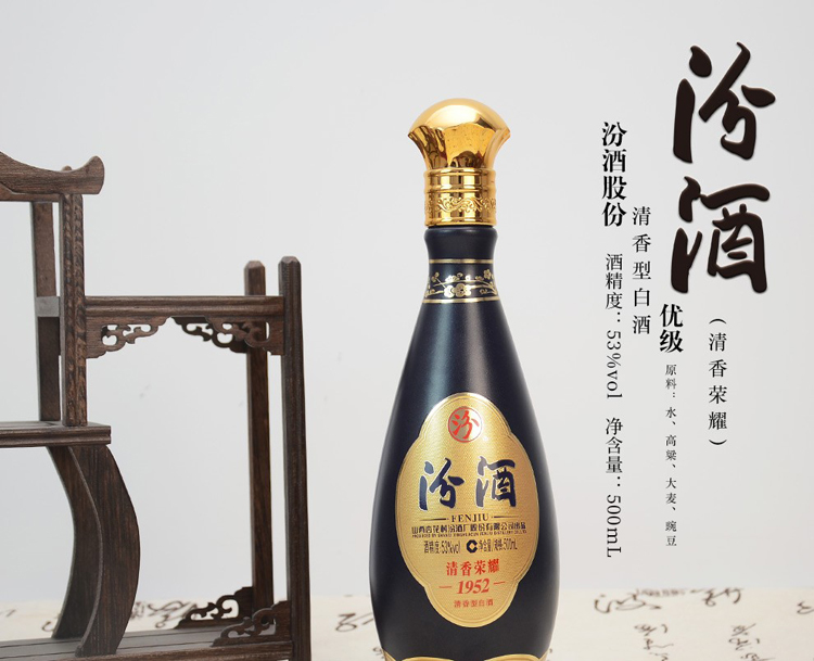 汾酒 清香荣耀1952 53度 清香型 优质酿造工艺 清香型汾酒优级 500ml*6瓶 整箱