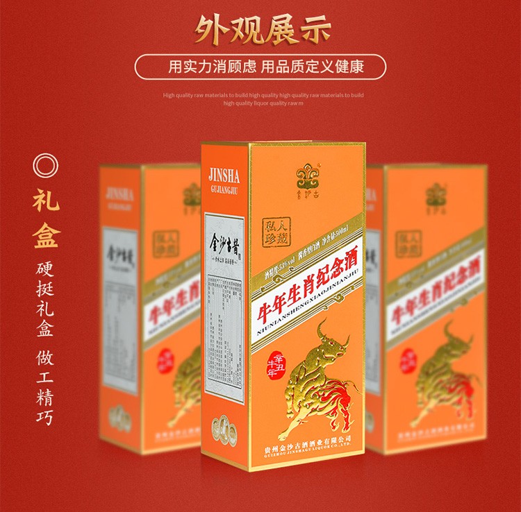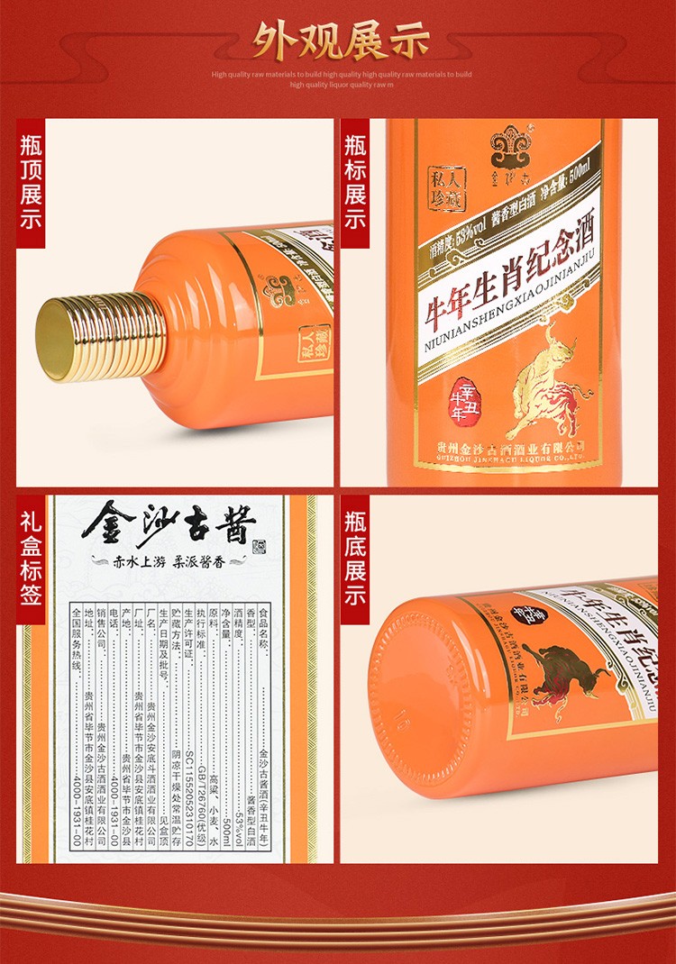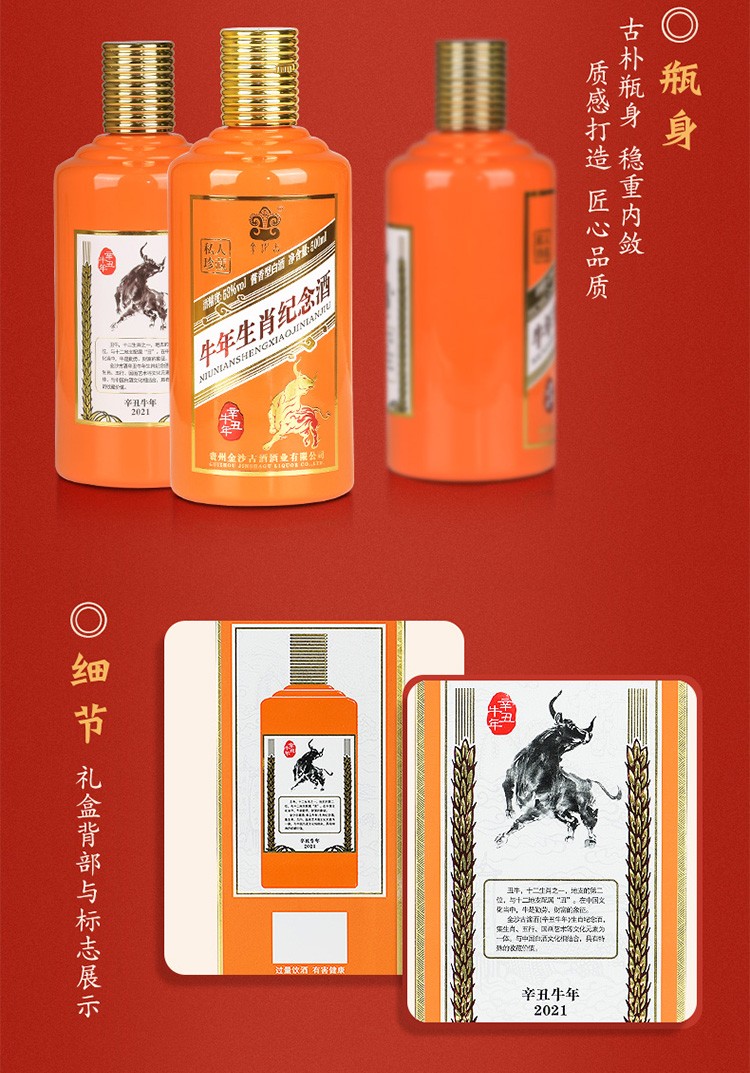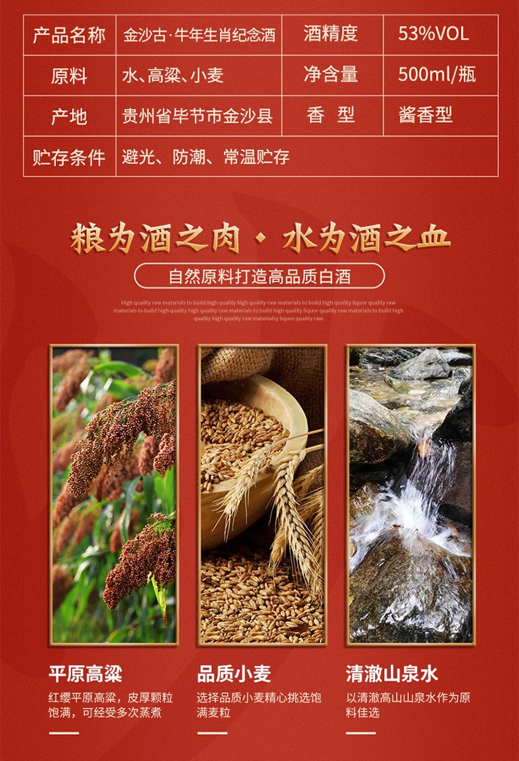 贵州金沙 金沙古酒 53度酱香型 粮食酒水 送礼宴请自饮佳品 金沙古牛年500ml*6瓶整箱装
