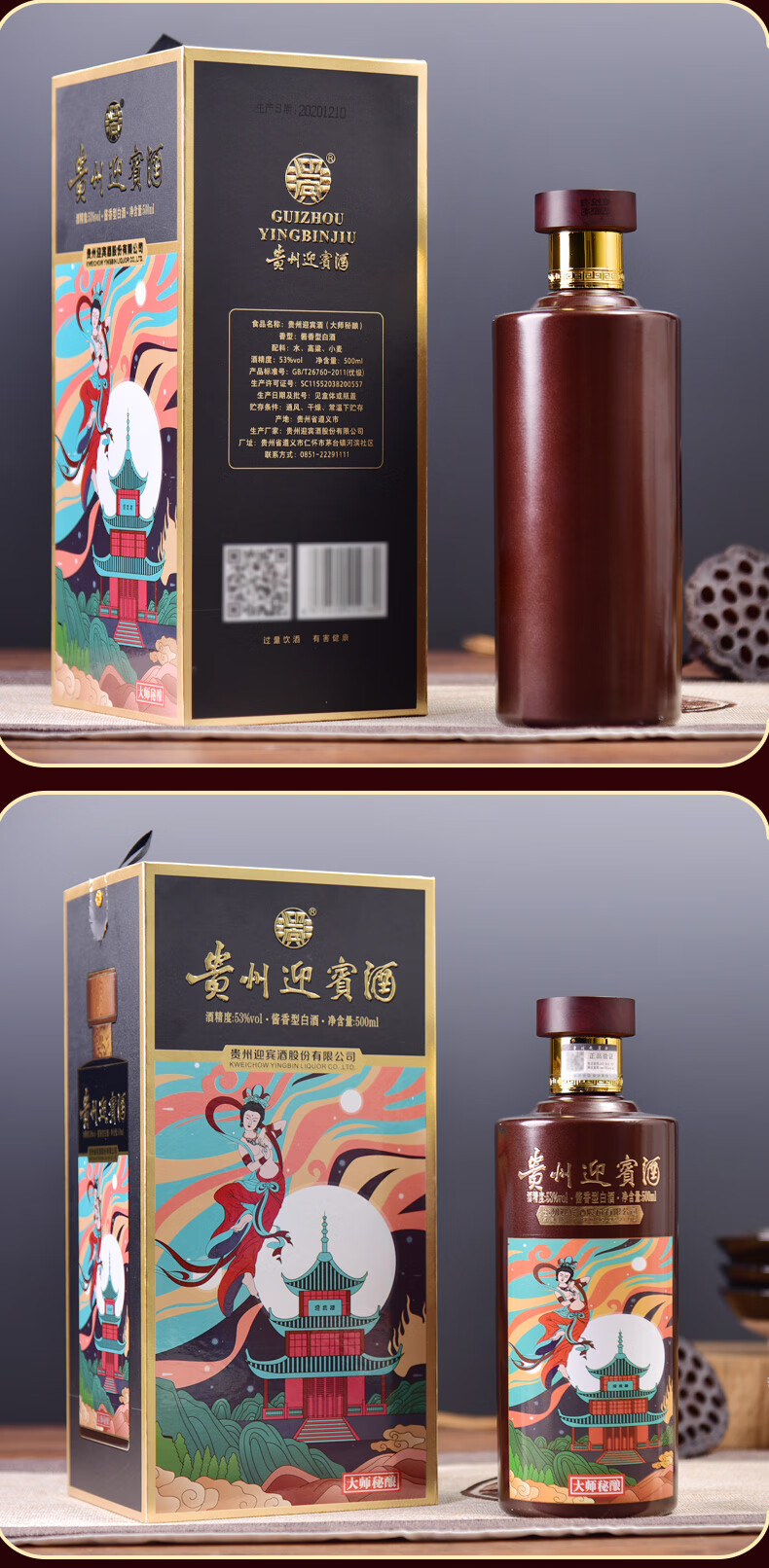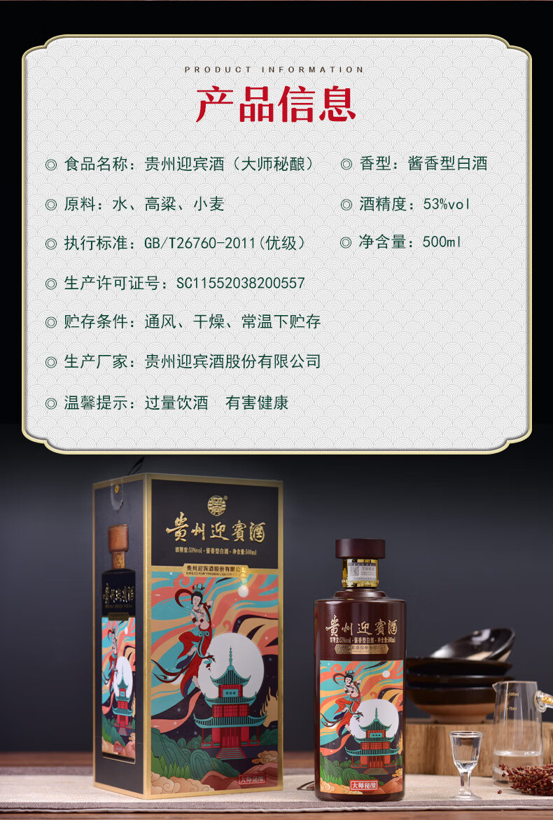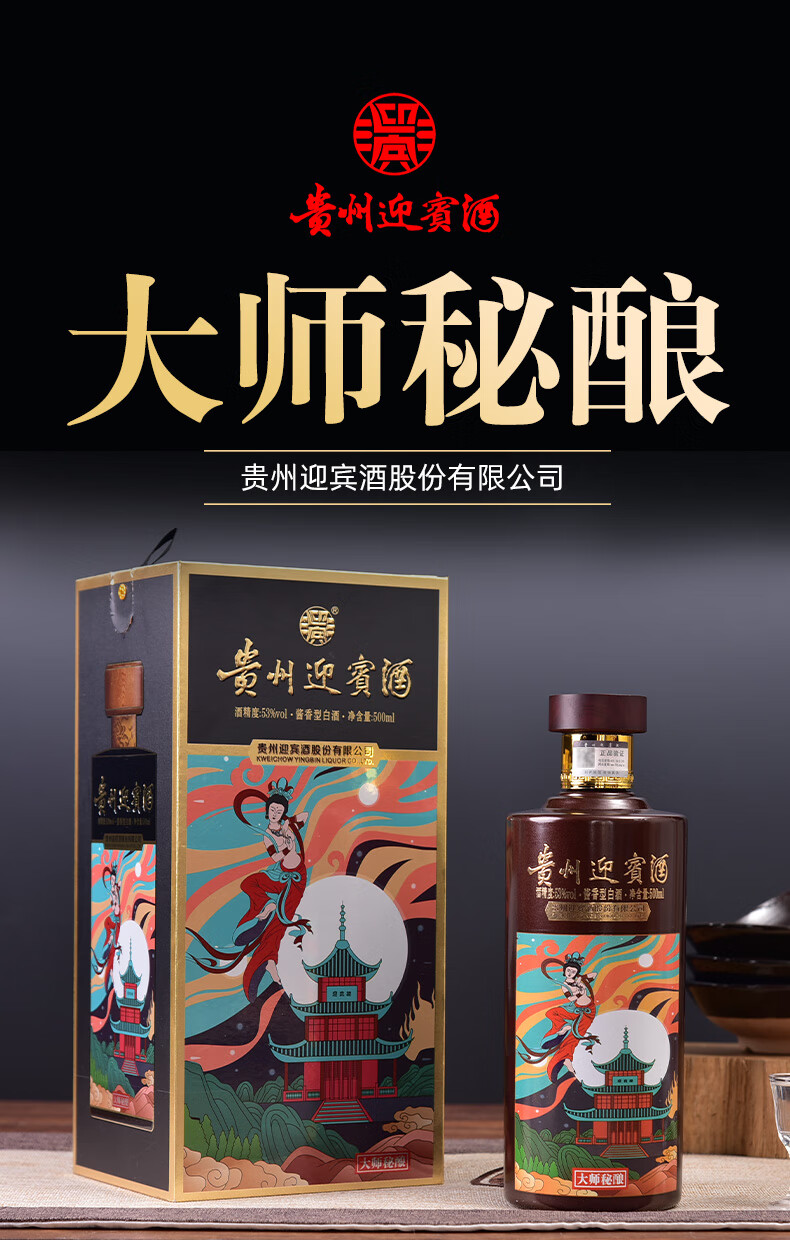 贵州迎宾酒 大师秘酿 53度酱香型白酒 礼盒白酒 500ML*6瓶 整箱装