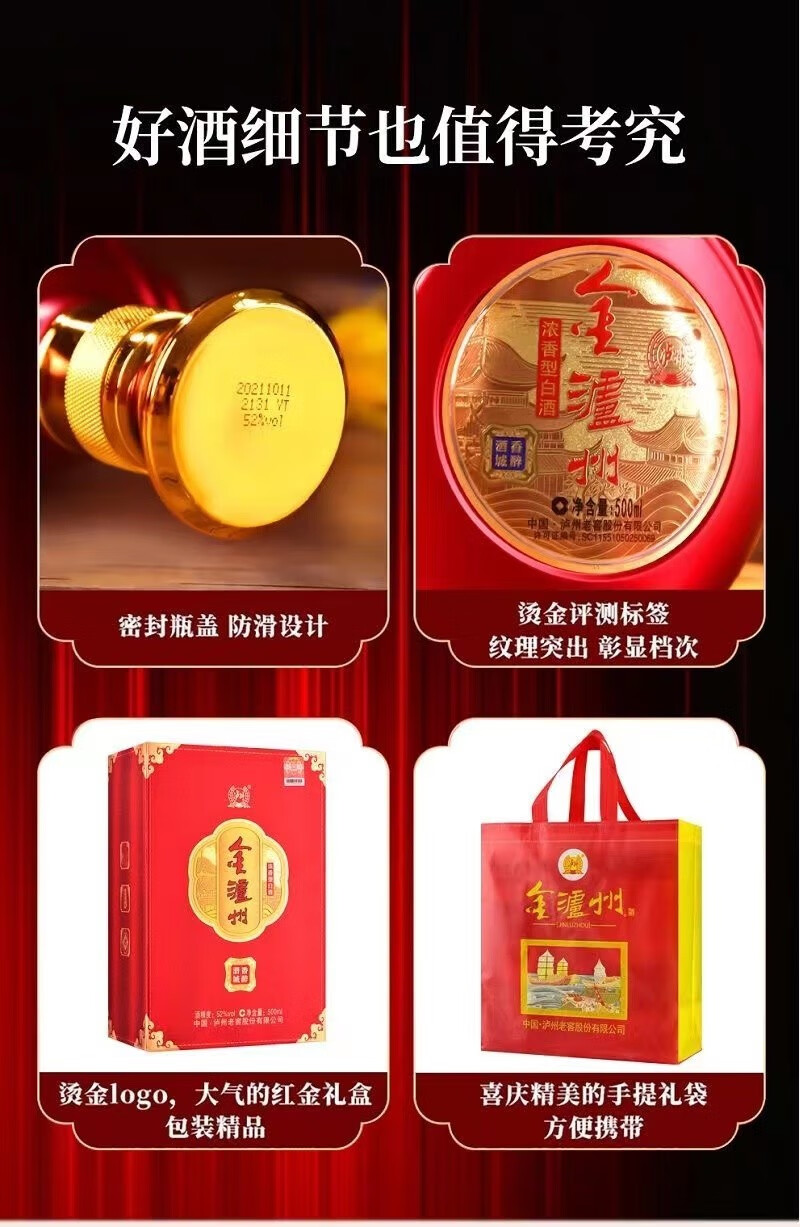 泸州老窖股份 金泸州香醉酒城52度白酒礼盒 商务送礼婚宴喜酒自饮口粮酒 500ml*6瓶装