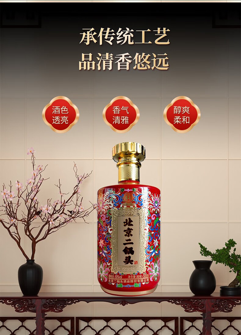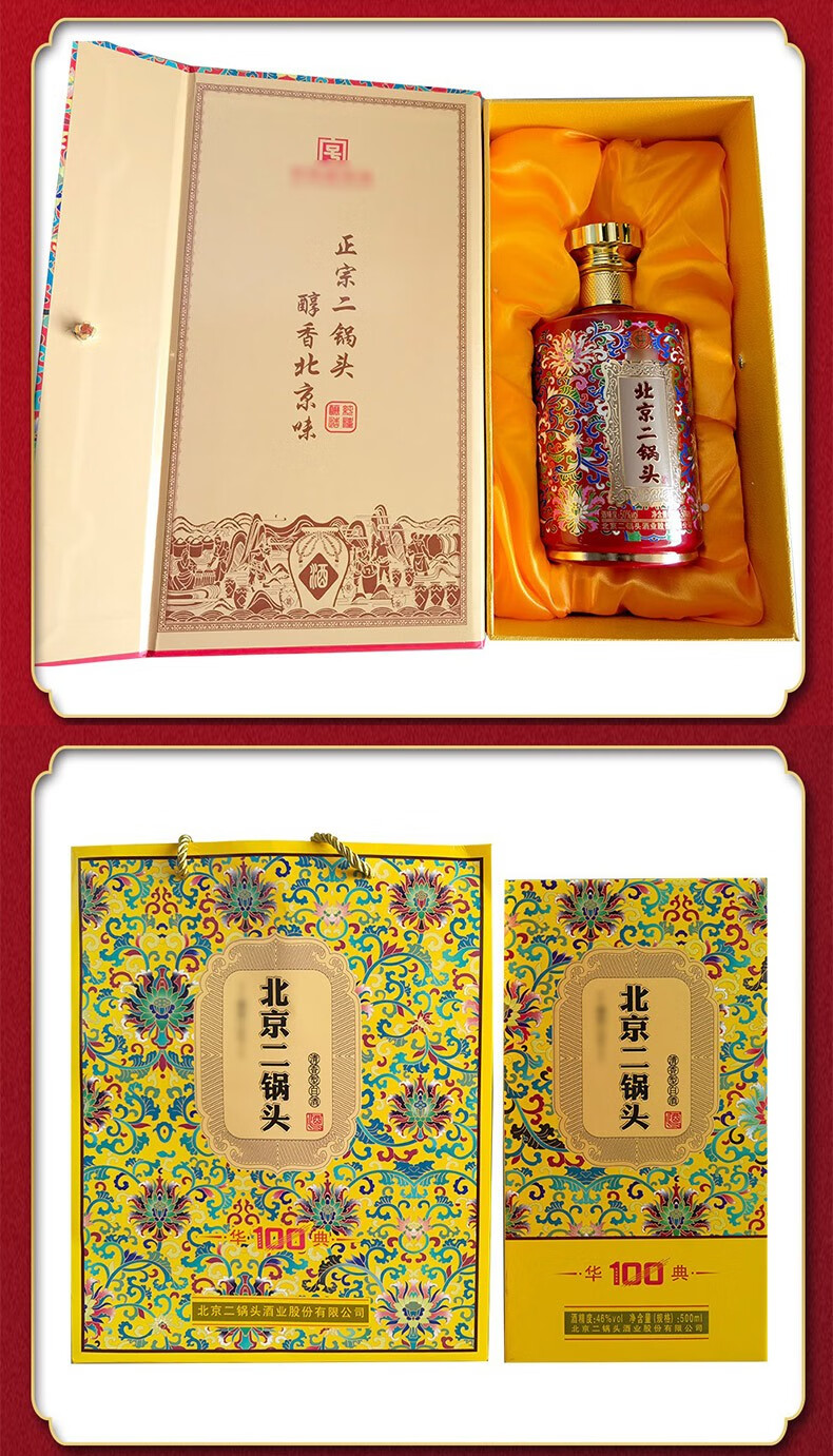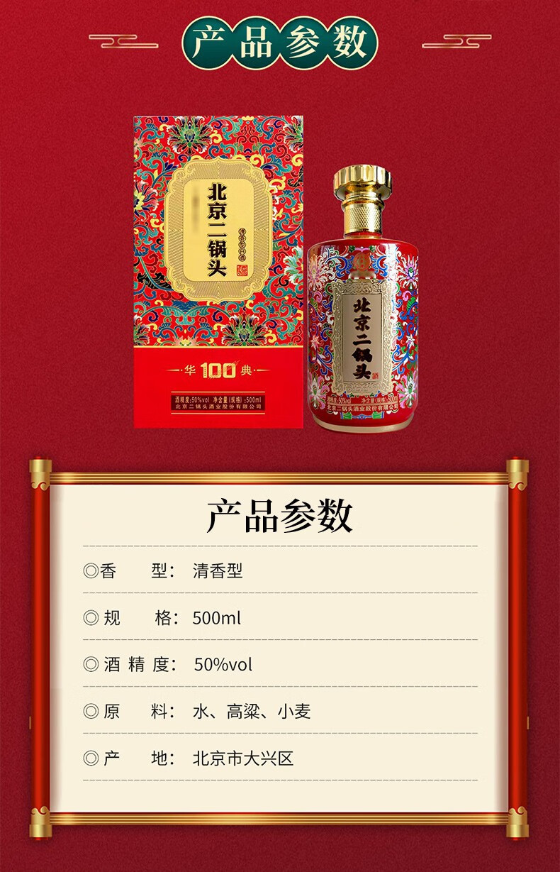 永丰二锅头 华典100 纯粮酒水粮食 50度清香型白酒 红色礼盒系列 500ml*6瓶 整箱装