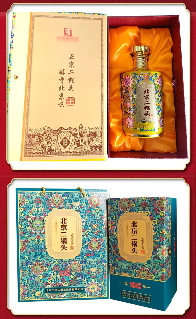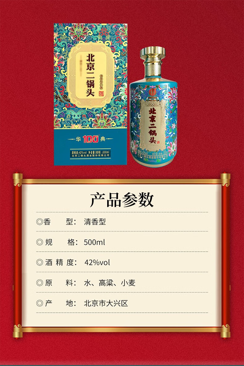 永丰二锅头 华典100 纯粮酒水粮食 42度清香型白酒 蓝色礼盒系列 500ml*6瓶 整箱装