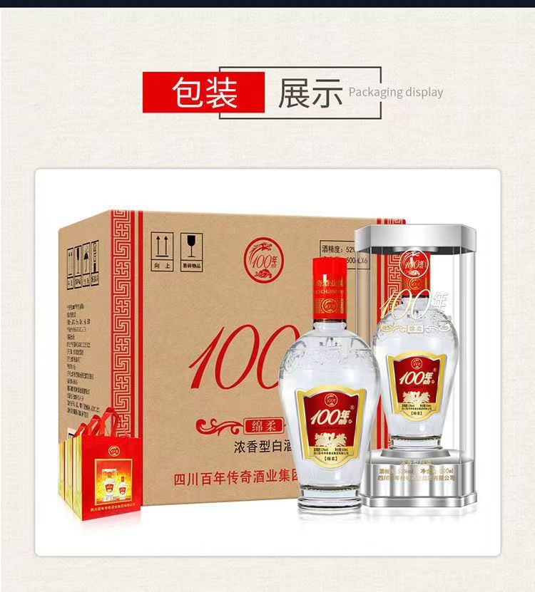100百年传奇 绵柔 浓香型白酒 52度 纯粮食婚宴酒 500ml*6瓶 整箱装