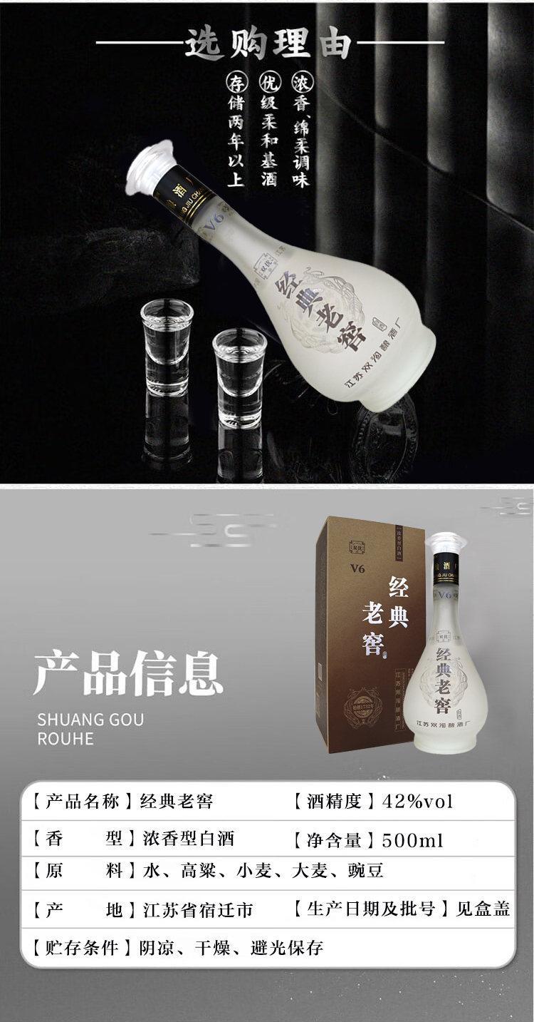 江苏双沟酒厂 经典老窖 V6 42度 浓香型白酒 500ml*6瓶 整箱装