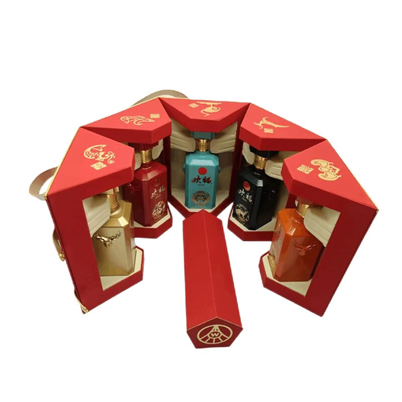 五粮液欢福 五粮液52度 浓香型白酒 礼盒装 粮食酿造 送礼佳品 欢福陈酿五福吉祥 500ml*5瓶 礼盒装