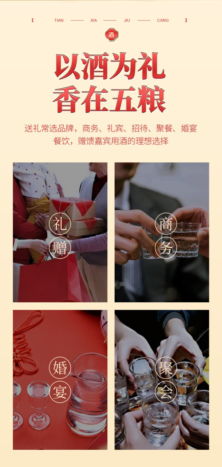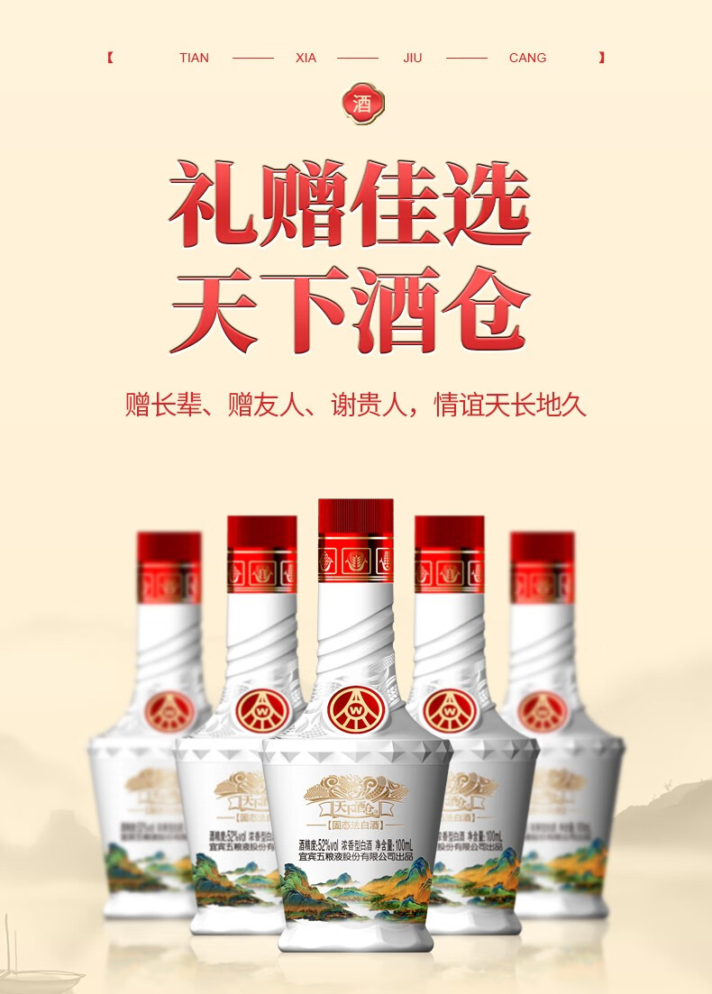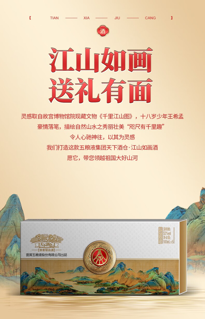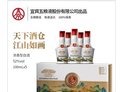 五粮液股份公司出品 52度浓香型白酒 商务宴请送礼 天下酒仓 江山如画 100ml*5瓶*6盒 整箱装