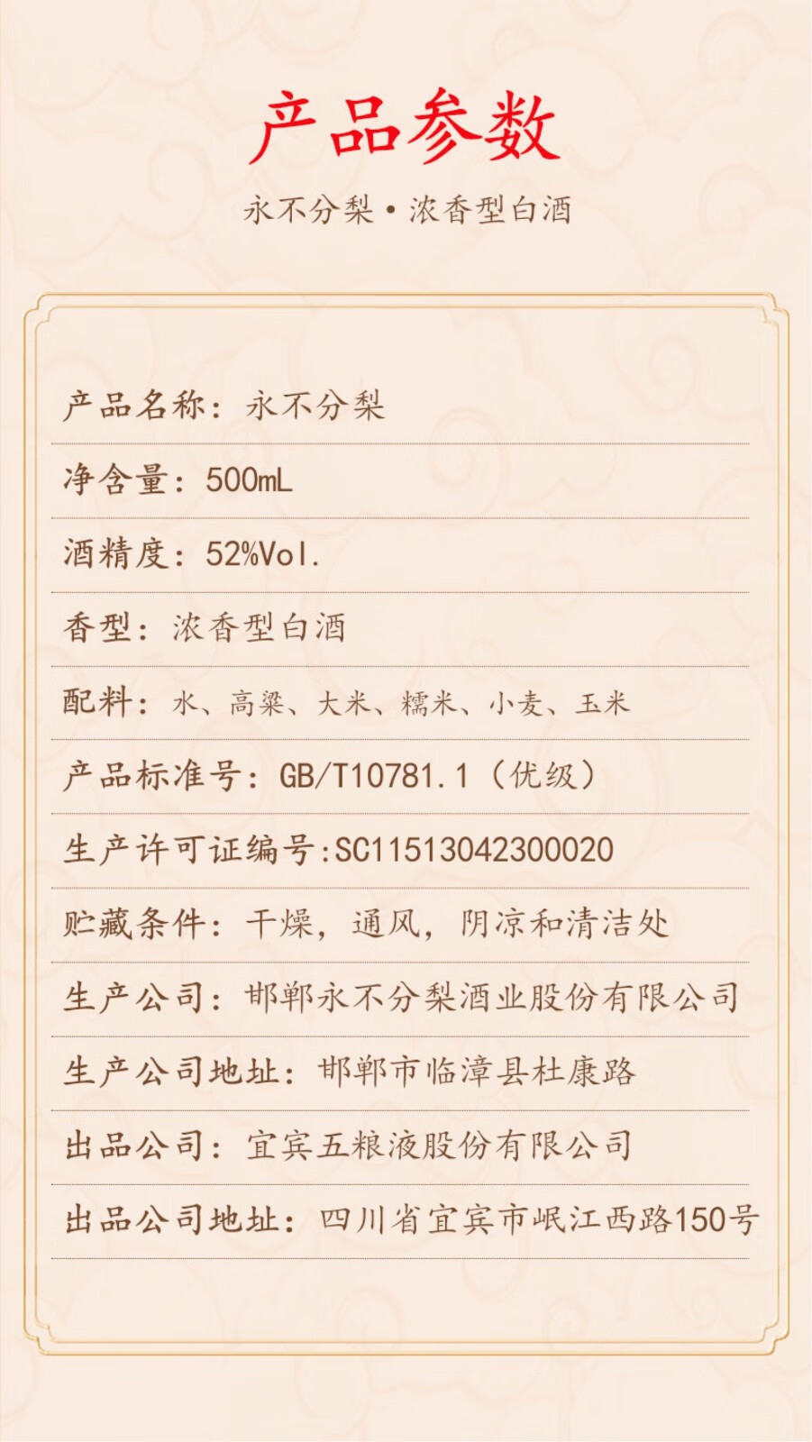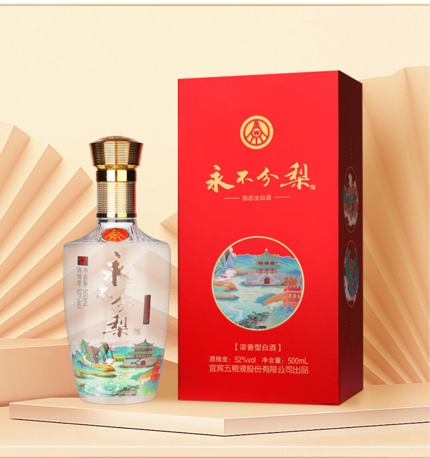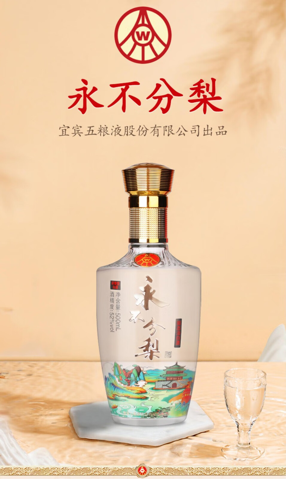五粮液股份出品 永不分梨 52度浓香型白酒礼盒 粮食酿造 醉美江山 500ml*6瓶 整箱装