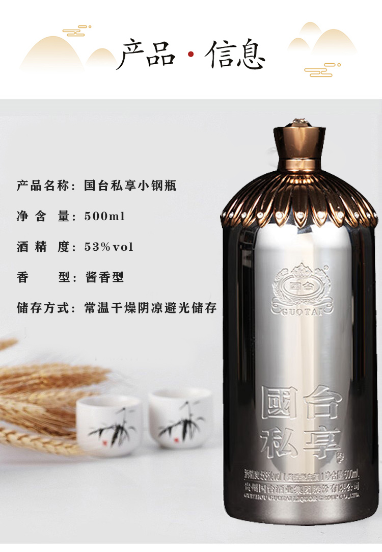 国台小钢瓶 53度酱香型白酒500ml*6瓶 整箱装 高档礼盒装 收藏送礼