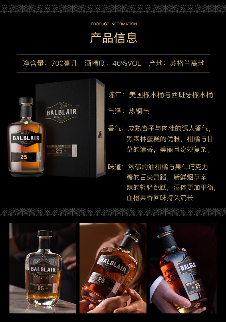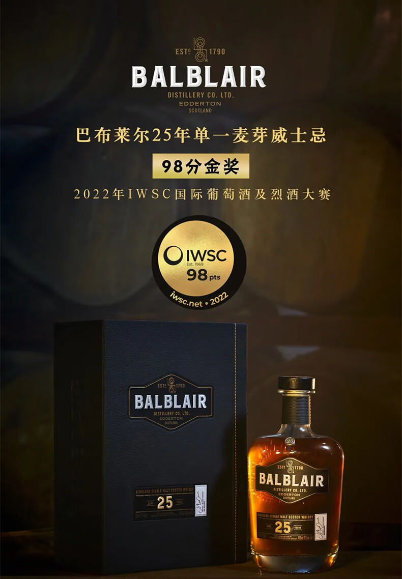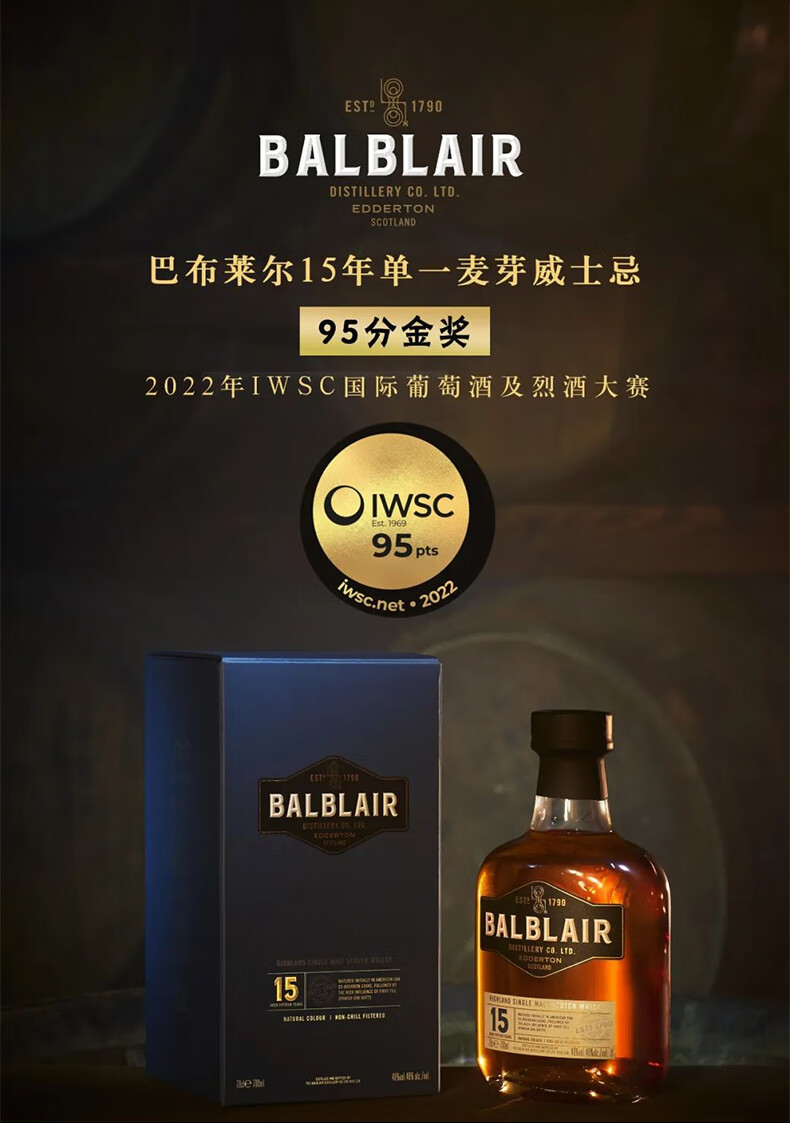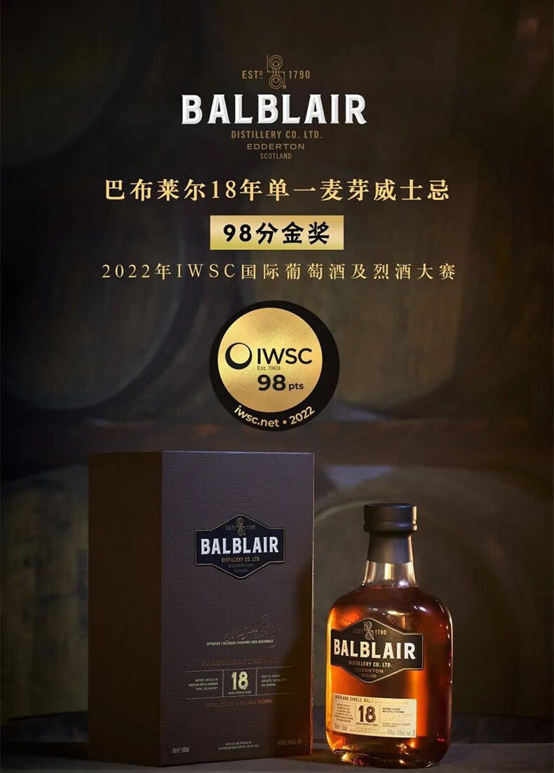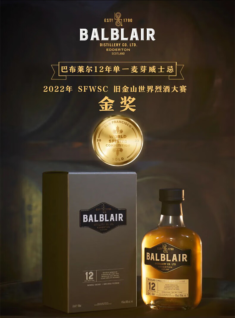 巴布莱尔(Balblair)12年 苏格兰单一麦芽威士忌洋酒 46%VOL 700ml 单瓶