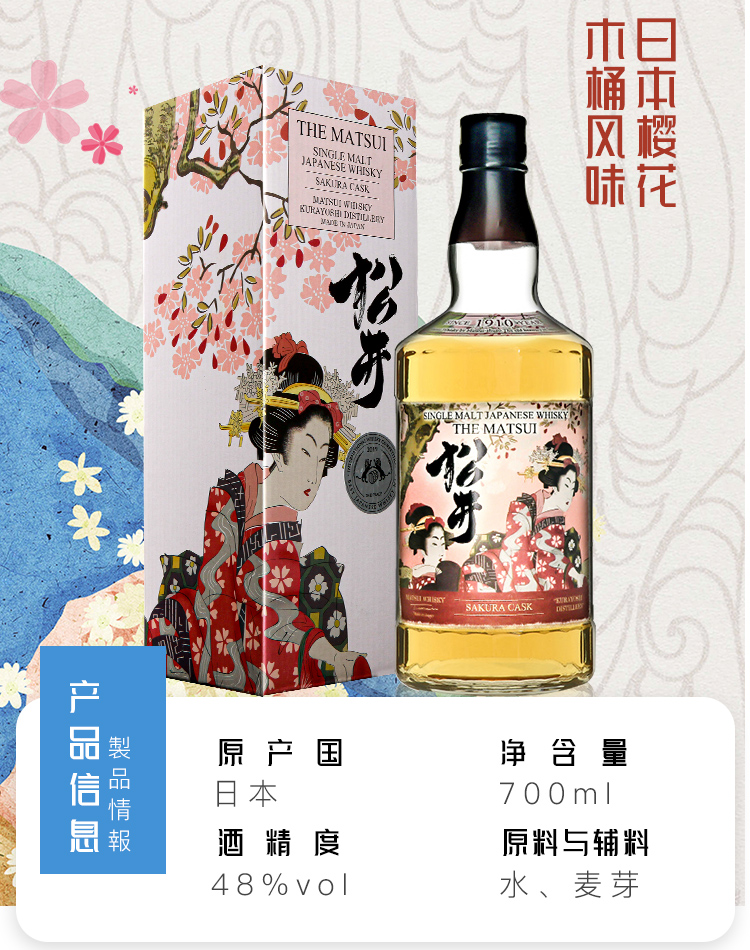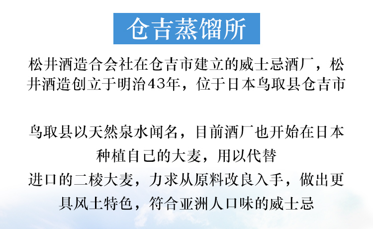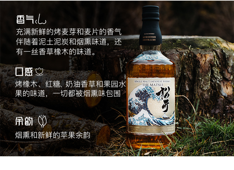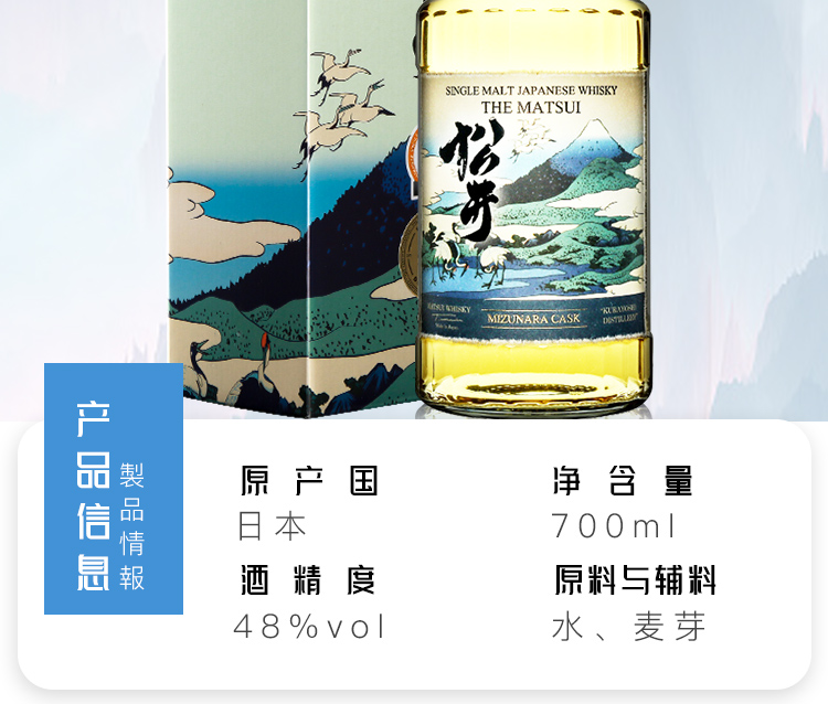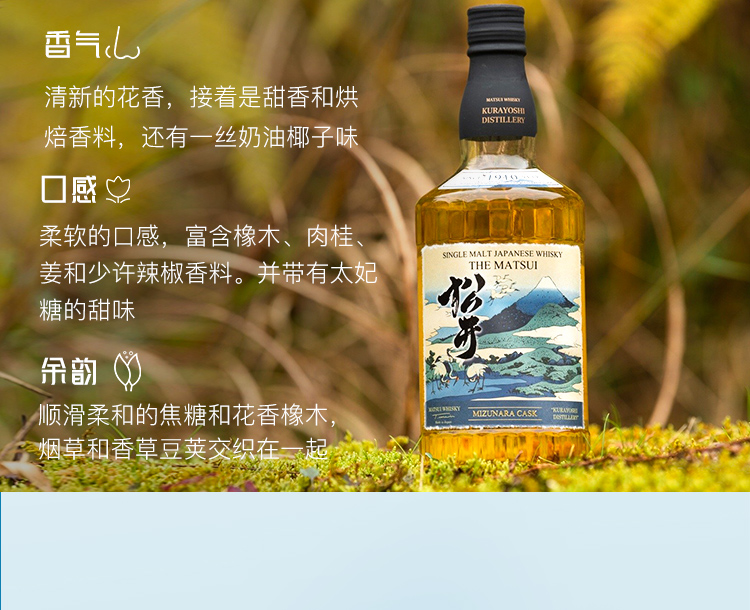格兰 日本 松井单一麦芽威士忌洋酒 松井泥煤味 40%VOL 700ml 单瓶