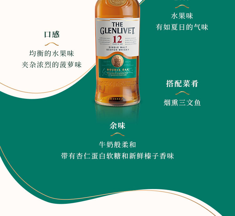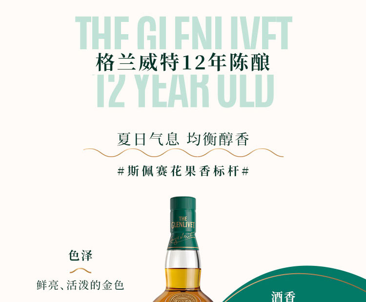 格兰威特(Glenlivet)12年 陈酿 苏格兰 单一麦芽 威士忌 40%VOL 洋酒 700ml 单瓶