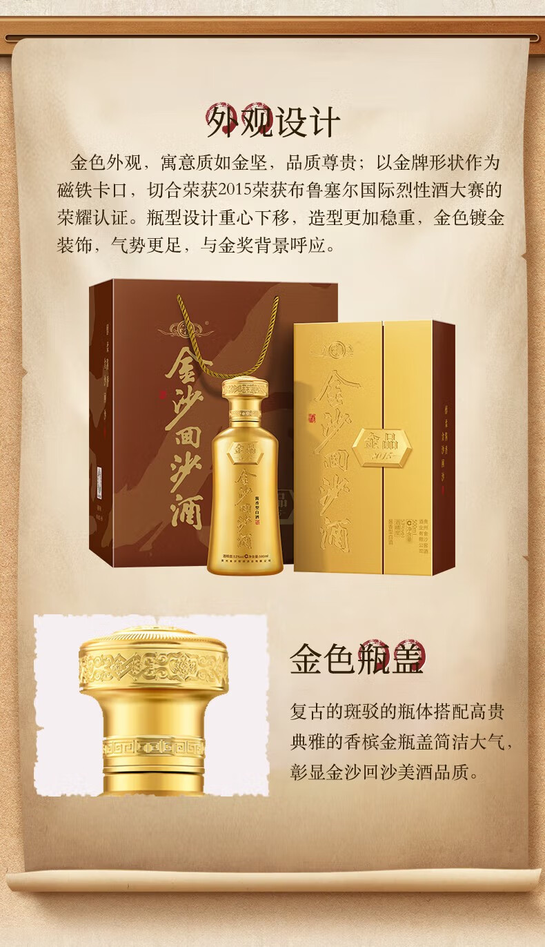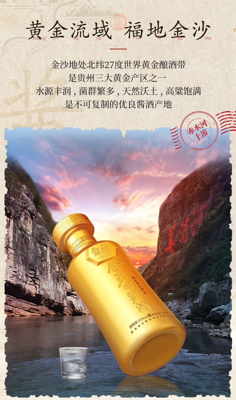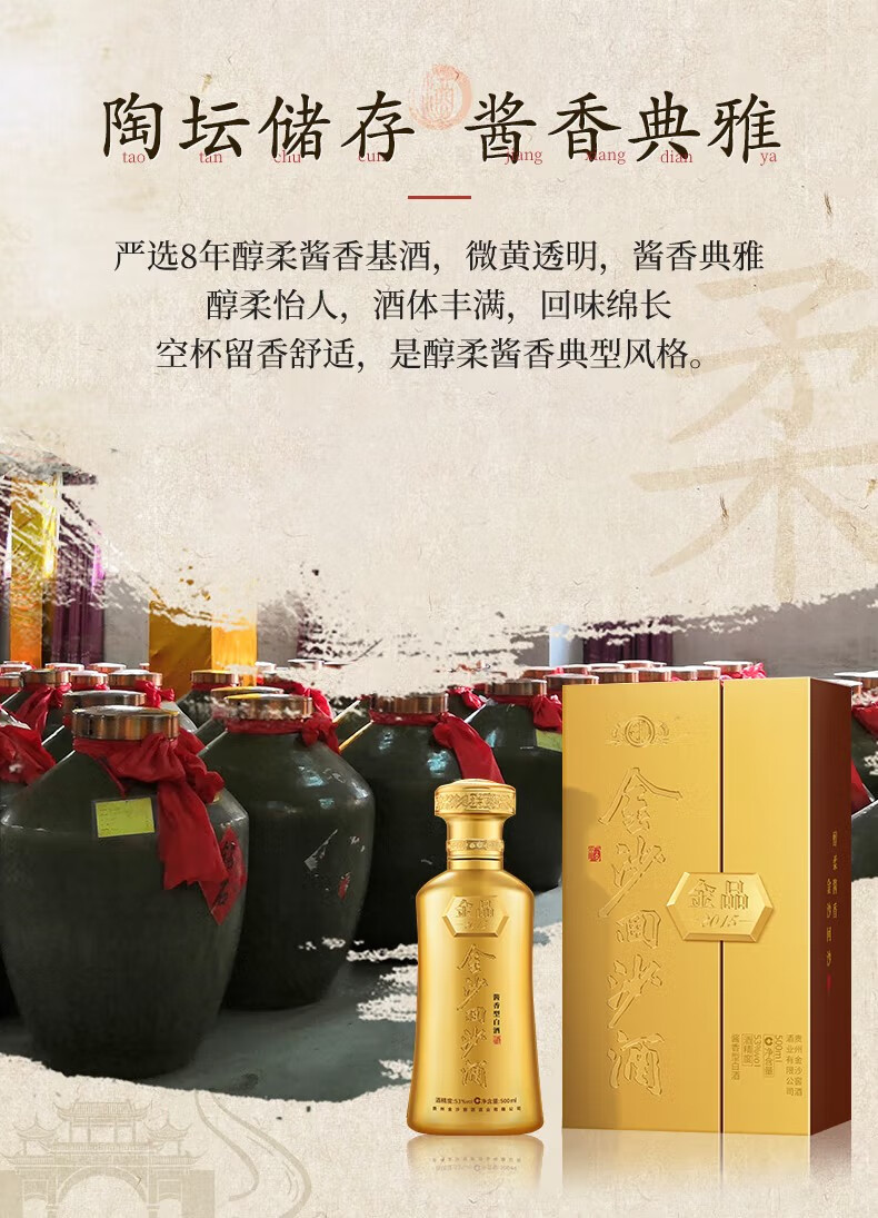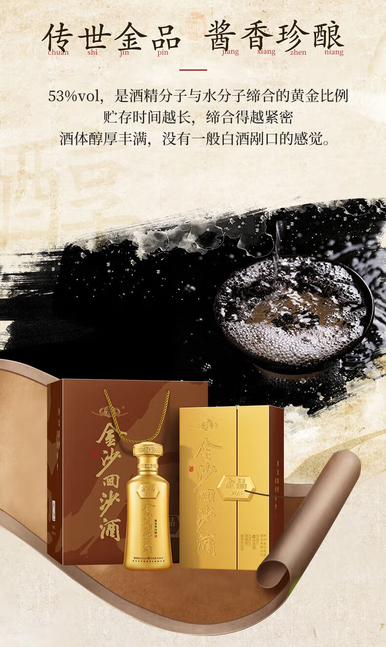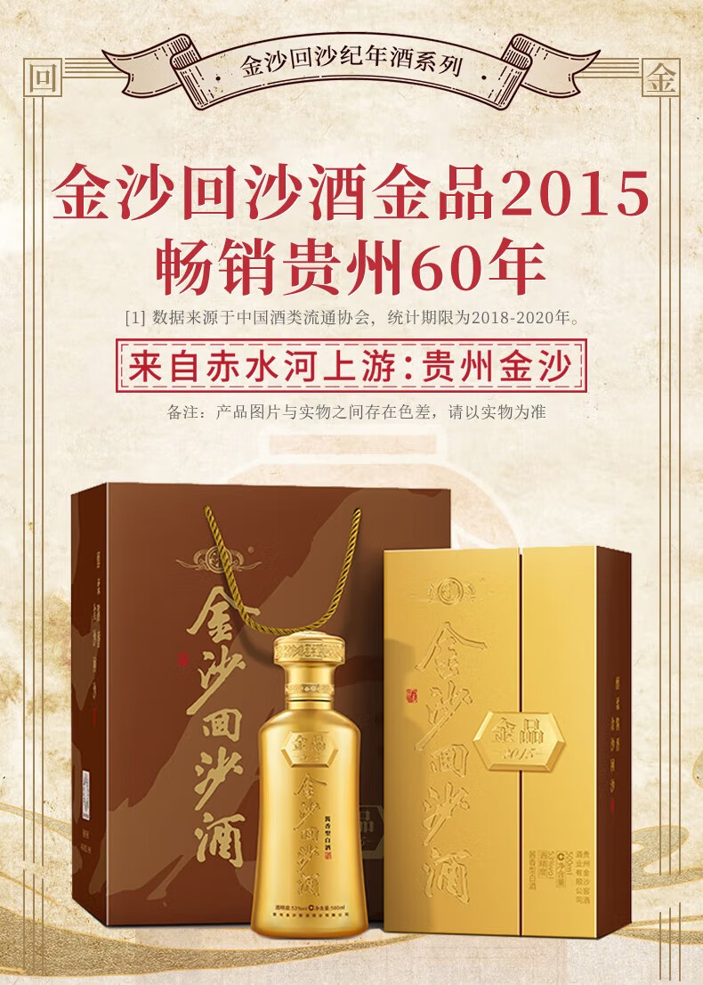 金沙回沙酒 53度 酱香型白酒 优级酒质 纯粮食酒 送礼 宴请 喜宴 2015金品 500ml*6瓶 整箱装