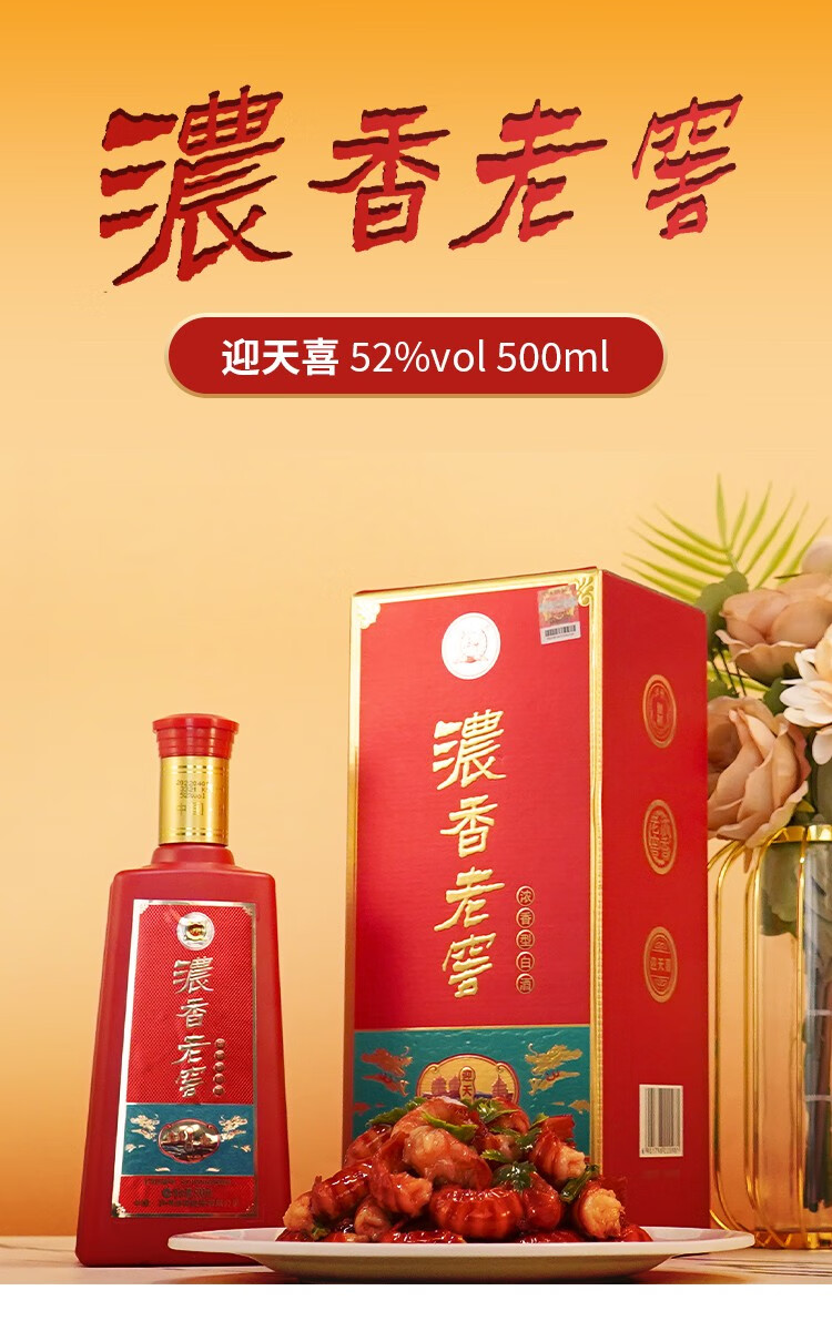 泸州(LUZHOU)老窖股份出品 浓香老窖迎天喜 52度浓香型白酒礼盒装 500ml*4