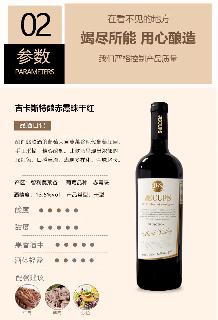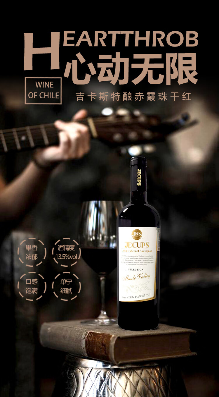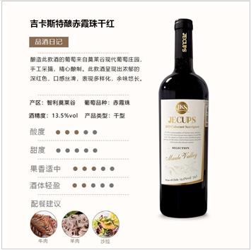 吉卡斯JECUPS 智利 干红葡萄酒原瓶进口 吉卡斯特酿葡萄酒750ml*6整箱装