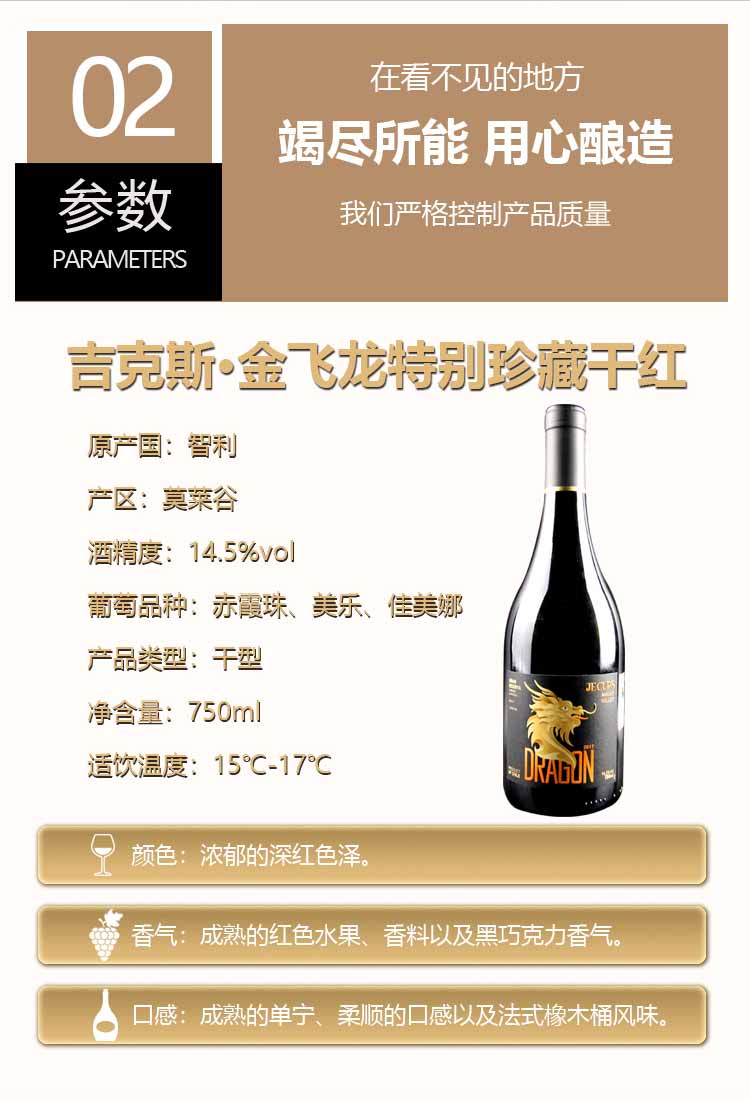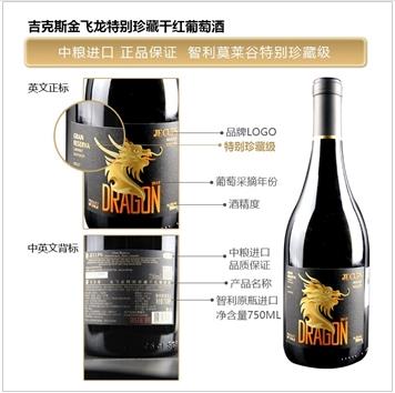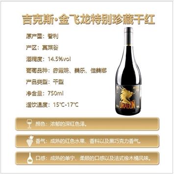吉克斯 飞龙系列 智利原瓶进口金龙干红葡萄酒 整箱6瓶装 750ml*6