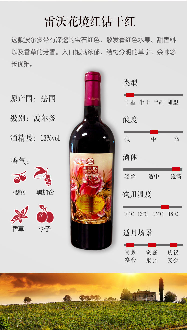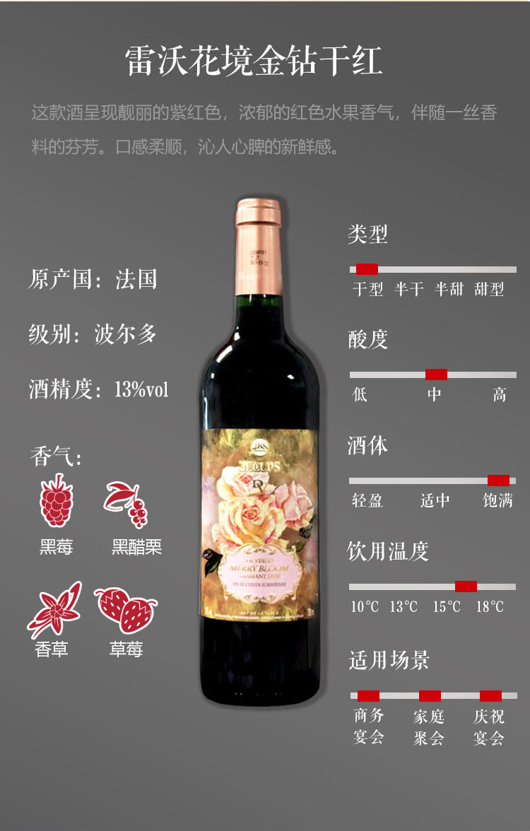 法国波尔多产区 雷沃堡酒庄原瓶进口干红葡萄酒 雷沃钻系列 红钻 750ml*6支 整箱装
