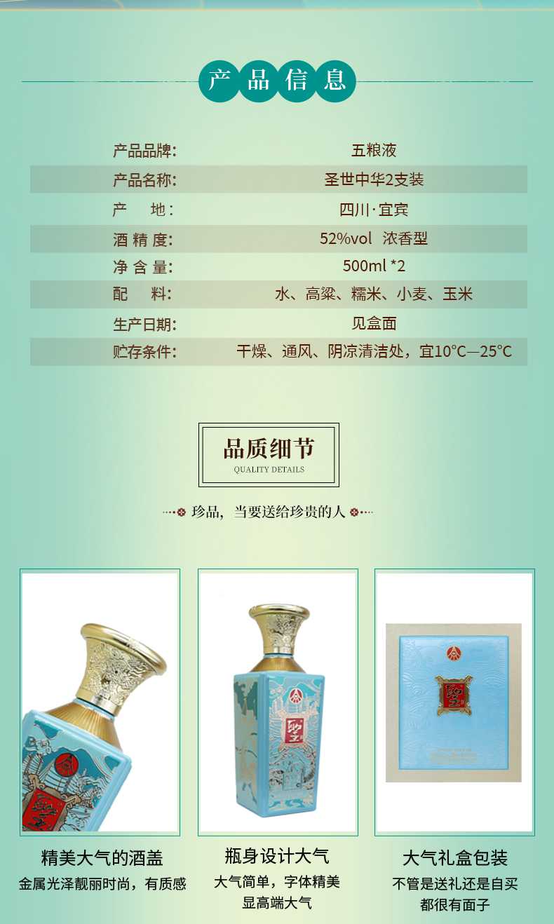 五粮液股份 圣酒圣世中华 浓香型白酒 52度 500ml*2瓶*3盒 礼盒 整箱装