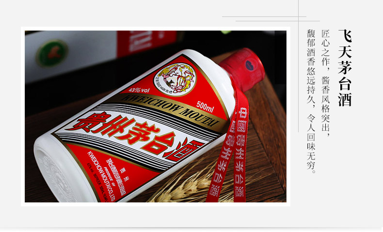 贵州茅台酒 飞天茅台 茅台飞天 43度 酱香型白酒 500ML*6瓶 整箱装