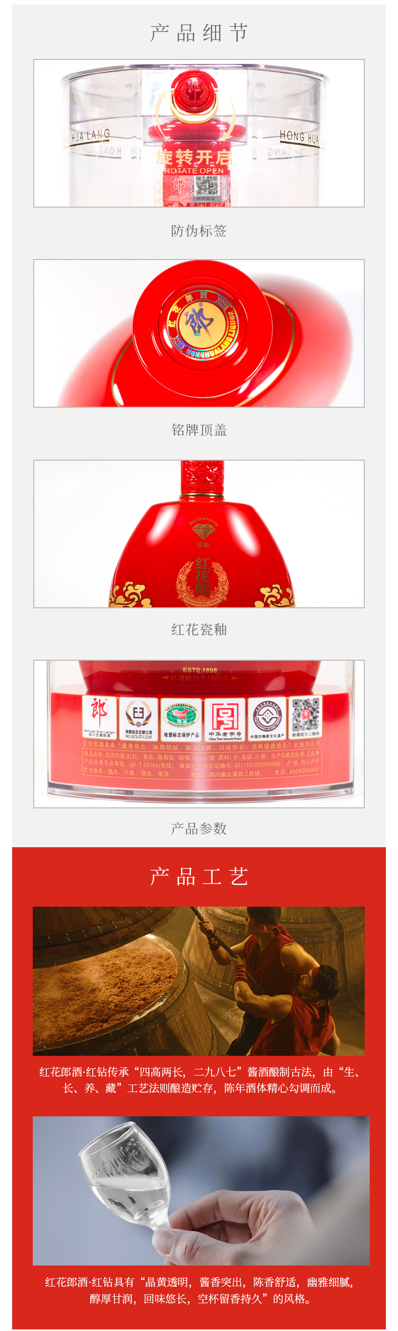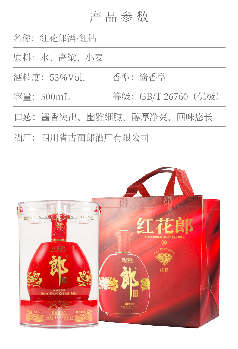 郎酒 红花郎红钻 53度酱香型白酒 500ml 整箱装 新老包装随机发货