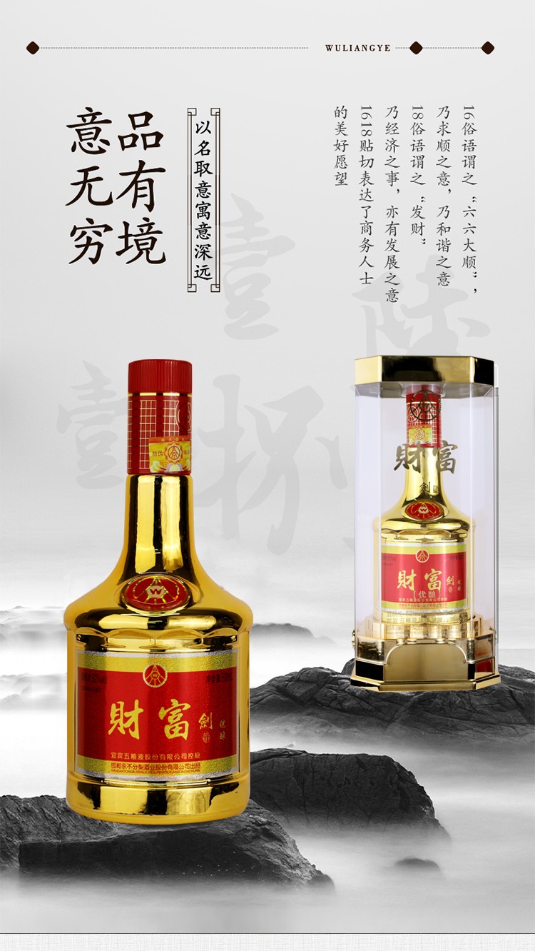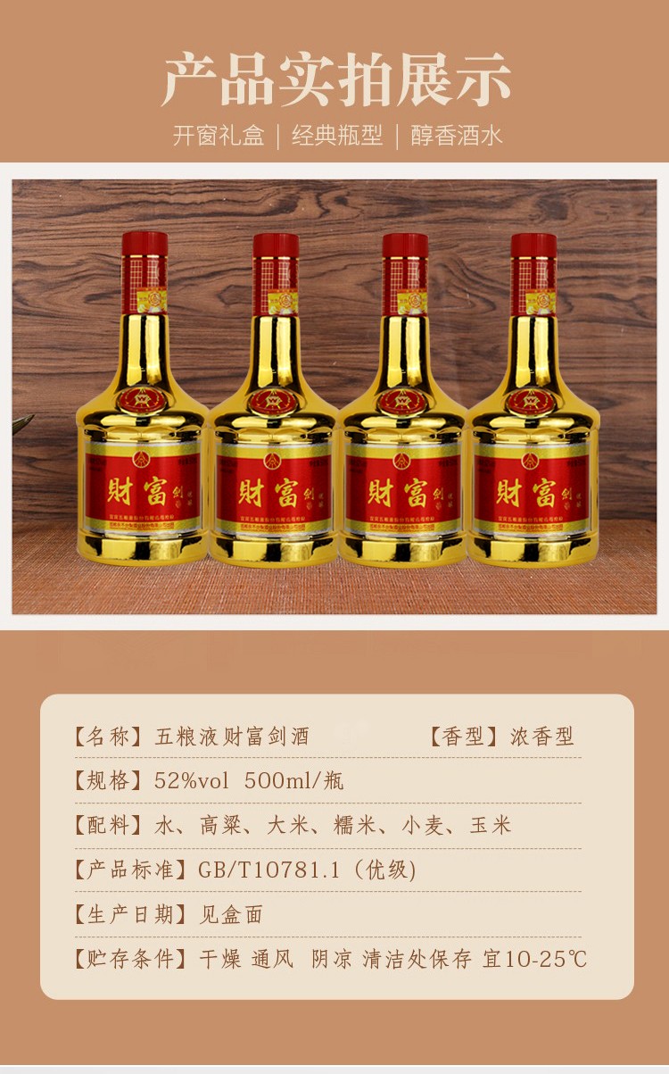 宜宾五粮液股份出品 五粮液 财富剑 金剑 52度浓香型白酒 500ml*6瓶 整箱装