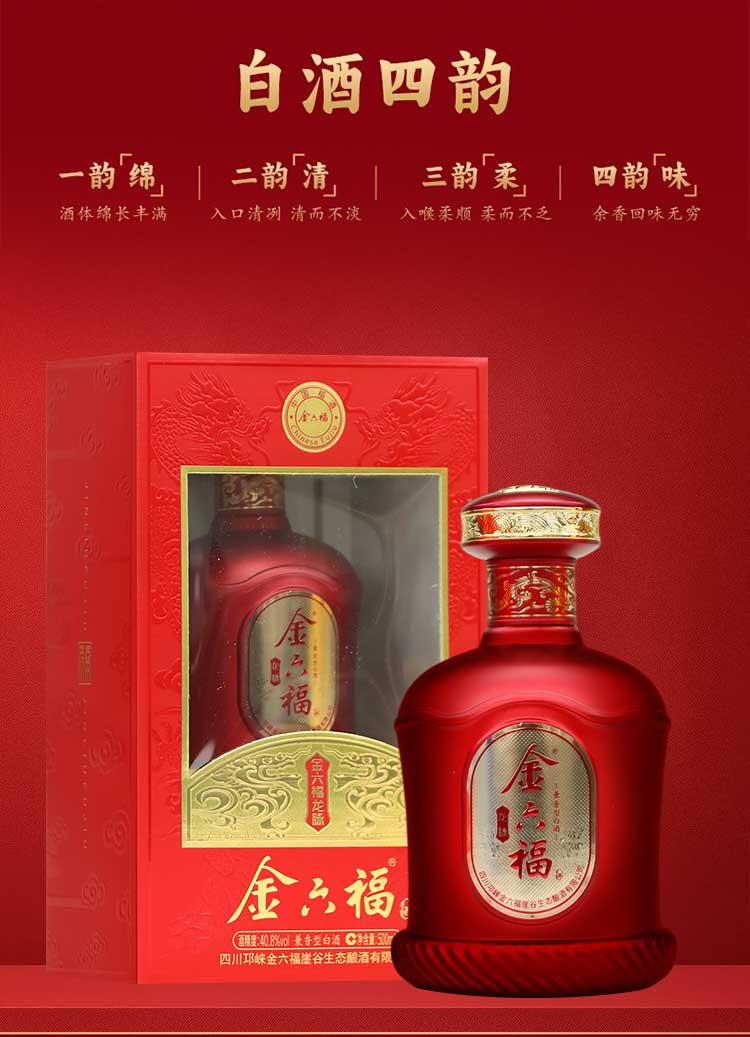 金六福 龙脉 40.8度 兼香型白酒 纯粮食 婚宴喜酒 口粮白酒 过节送礼 500mL*6瓶 整箱