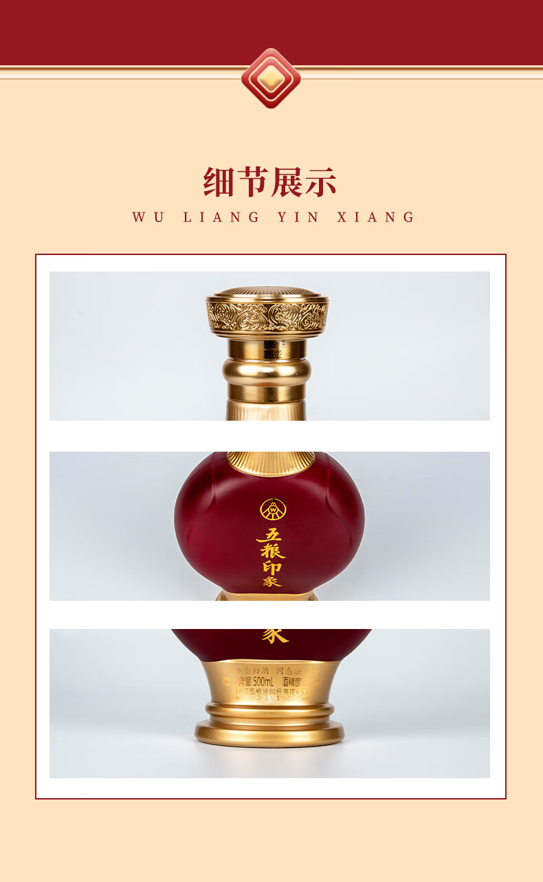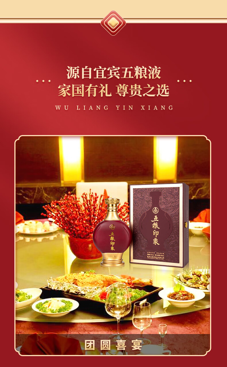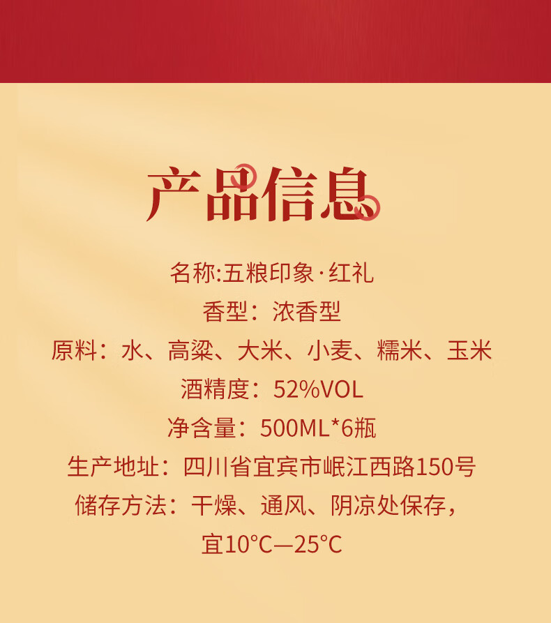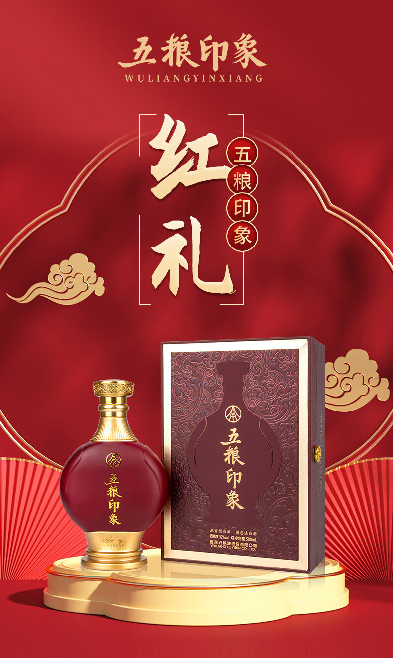 宜宾五粮液股份公司出品 五粮印象 红礼 52度 浓香型高度白酒 500ml*6瓶 整箱装