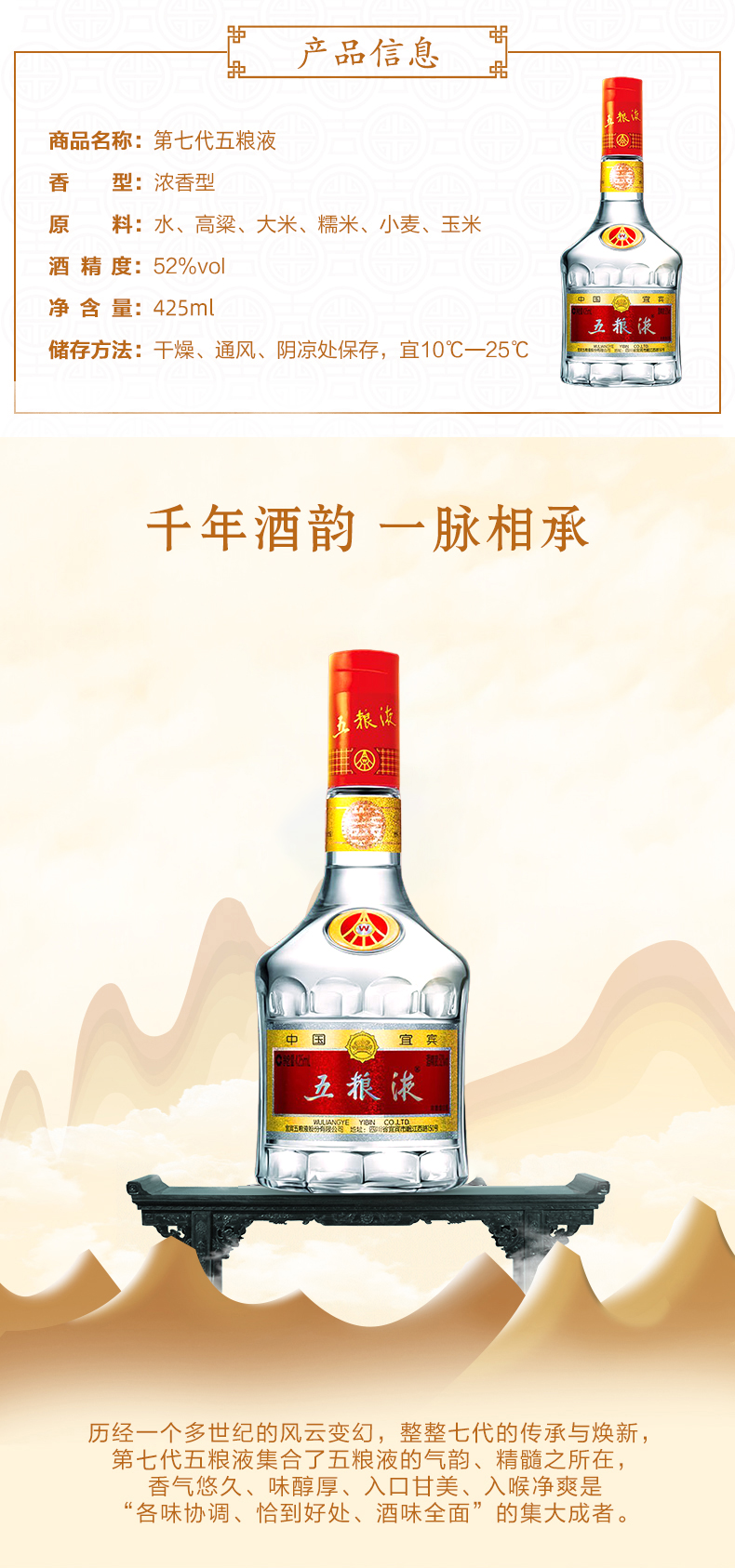 五粮液 普五 第七代 浓香型白酒 52度 425ml*6瓶 整箱