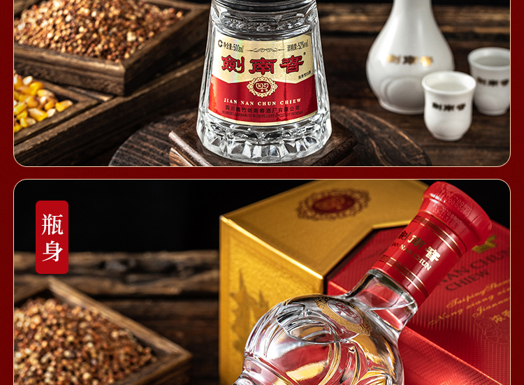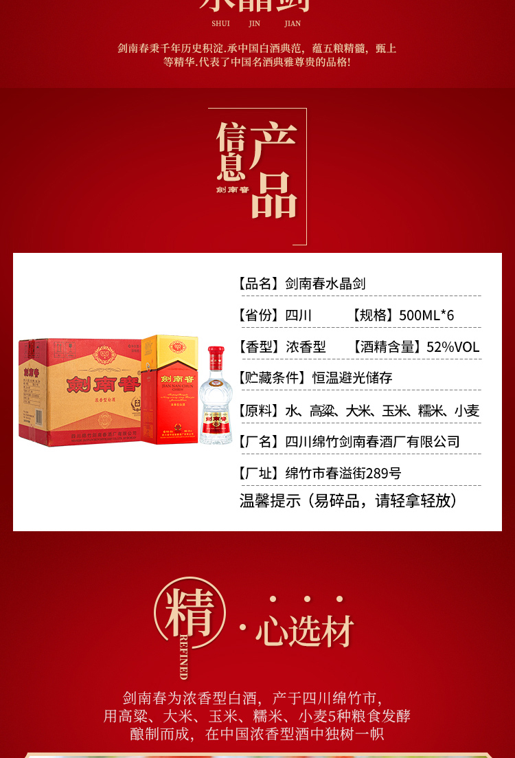 剑南春 水晶剑 浓香型白酒 52度 500ml*6瓶 整箱装 (新老包装随机发货)